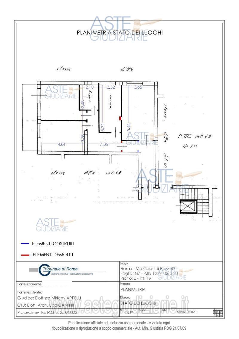 Vendita all'asta Senza incanto, con gara telematica asincrona - LOTTO 9: Nuda proprietà (l’usufruttuario è nato l’11.10.1949) di appartamento ubicato a Roma (RM) - via Casal dei Pazzi 33, int. 19, piano 3. Prezzo base € 143.000,00 (offerta minima € 107.250,00). Data inizio operazioni di vendita: 05/03/2026 ore 14:00. Giudice Iappelli. Professionista delegato alla vendita Not. Giovanni Berionne. Custode Giudiziario I.V.G Di Roma S.R.L. - Email "pvp@visiteivgroma.it"; Cell. 0689569801. Rif. Tribunale di Roma - Esecuzione immobiliare post legge 80 n. 256/2022