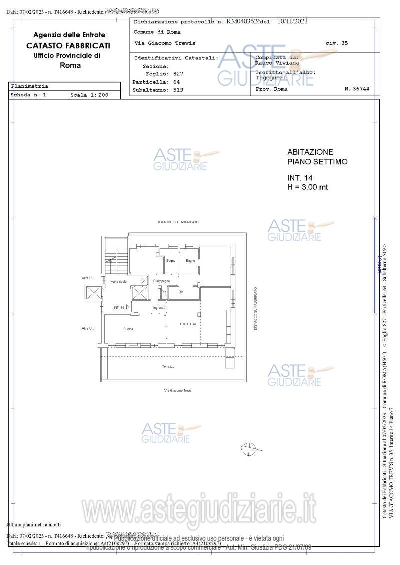 Vendita all'asta Senza incanto, con gara telematica asincrona - LOTTO UNICO: Appartamento Via Giacomo Trevis 35, piano 7, int. 14, soggiorno, due camere, cucina, due bagni, due ripostigli, un disimpegno, un ingresso e terrazzo a livello, mq 153,09 (sup.convenz.). Foglio 827, Part. 64, Sub. 519. Sono presenti difformità, talune non sanabili. Prezzo base € 485.000,00 (offerta minima € 363.750,00). Data inizio operazioni di vendita: 11/02/2026 ore 15:00. Giudice Dott. Miriam Iappelli. Professionista delegato alla vendita Dott. Andrea Russo. Custode Giudiziario Ivg Di Roma Srl - Email "pvp@visiteivgroma.it"; Tel. 0689569801. Rif. Tribunale di Roma - Contenzioso civile n. 28903/2025