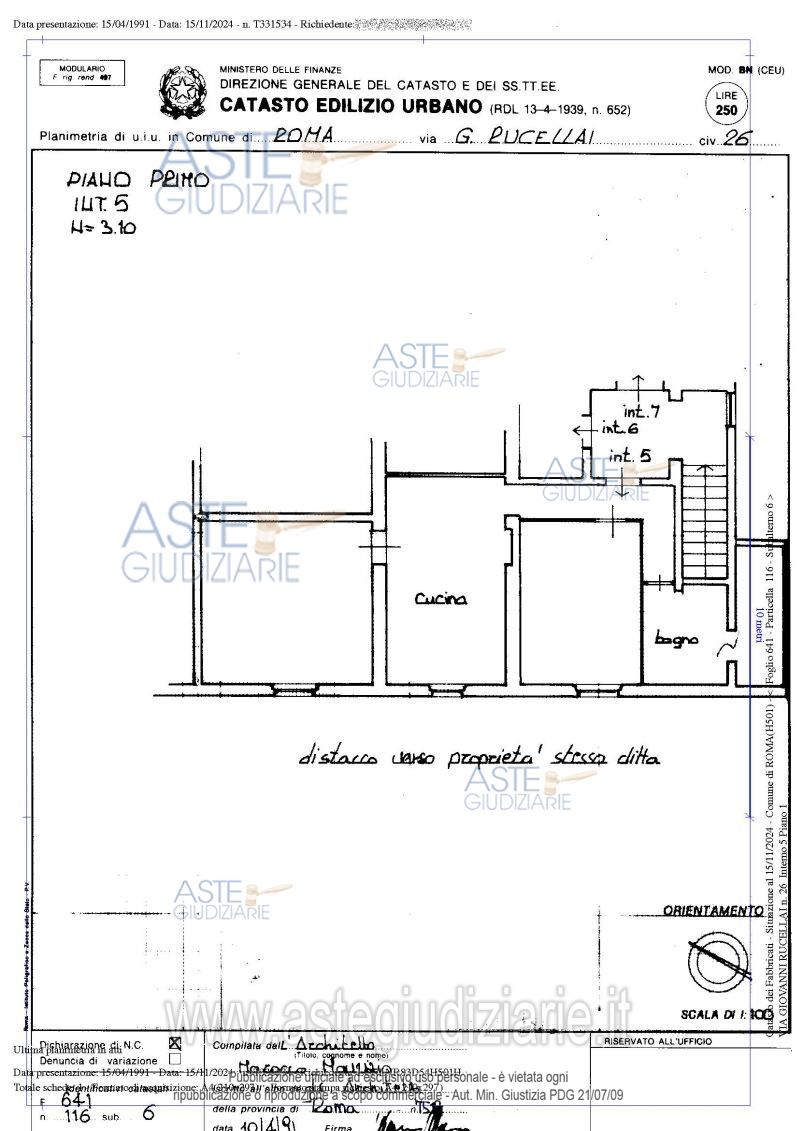 Vendita all'asta Senza incanto, con gara telematica asincrona - LOTTO UNICO: Quota pari a 1/1 del diritto di piena proprietà su appartamento ad uso civile abitazione sito in Roma, quartiere Tor Sapienza, in via Giovanni Rucellai n. 26, piano primo, int. 5. Prezzo base € 96.800,00 (offerta minima € 72.600,00). Data inizio operazioni di vendita: 20/04/2026 ore 15:00. Giudice Dott. Miriam Iappelli. Professionista delegato alla vendita Avv. Maria Ancora. Custode Giudiziario Ivg Di Roma Srl - Email "pvp@visiteivgroma.it"; Tel. 0689569801. Rif. Tribunale di Roma - Esecuzione immobiliare post legge 80 n. 344/2022