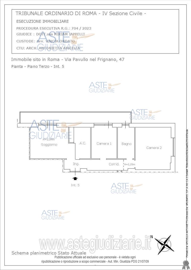 Vendita all'asta Senza incanto, con gara telematica asincrona - LOTTO UNICO: Quota pari a 1/1 del diritto di piena proprietà su appartamento uso civile abitazione posto al piano terzo del fabbricato sito nel Comune di Roma, Municipio X, quartiere Casal Bernocchi, alla Via Pavullo nel Frignano n.47, identificato con il numero interno 5. L’appartamento, si compone di ingresso/corridoio, soggiorno con angolo cottura, 2 camere e bagno ed è dotato di un balcone; il tutto, per una superficie commerciale complessiva di circa mq. 77,35 mq. Prezzo base € 157.000,00 (offerta minima € 117.750,00). Data inizio operazioni di vendita: 26/02/2026 ore 15:00. Giudice Bianca Maria Ferramosca. Professionista delegato alla vendita Avv. Vincia Ondato. Custode Giudiziario Ivg Di Roma S.R.L. - Email "pvp@visiteivgroma.it"; Tel. 0689569801. Rif. Tribunale di Roma - Espropriazione immobiliare (cartabia) n. 704/2023