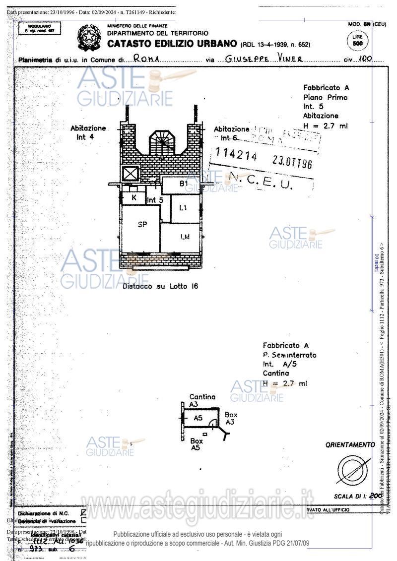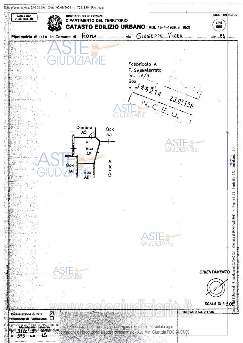 Vendita all'asta Senza incanto, con gara telematica asincrona - LOTTO 1: Quota pari a 1/1 del diritto di superfice su compendio immobiliare sito in Roma, Via Giuseppe Viner n. 100 composto da appartamento ubicato a Roma (RM) - via Giuseppe Viner 100, interno 5, piano 1 S1, di complessivi 76,38 mq., oltre cantina pertinenziale e box auto di 18 mq . Prezzo base € 171.000,00 (offerta minima € 128.250,00). Data inizio operazioni di vendita: 25/02/2026 ore 11:00. Giudice Federica D'ambrosio. Professionista delegato alla vendita Dott. Tommaso Mililli. Custode Giudiziario I.V.G Di Roma S.R.L. - Email "pvp@visiteivgroma.it"; Tel. 0689569801. Rif. Tribunale di Roma - Espropriazione immobiliare (cartabia) n. 369/2023
