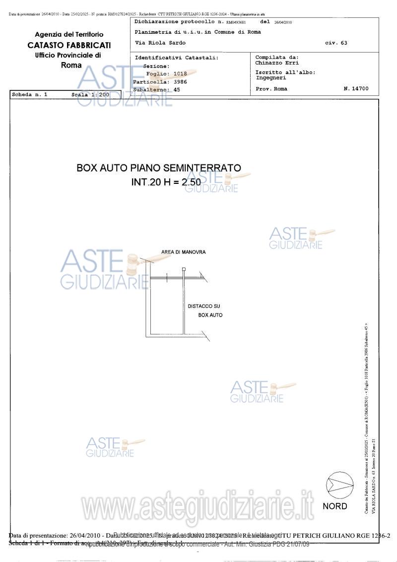 Vendita all'asta Senza incanto, con gara telematica asincrona - LOTTO 7: Appartamento interno 14, piano 2 – 3, sviluppantesi su due livelli. Il tutto per una superficie convenzionale complessiva di mq. 79,70 circa. Con Garage ubicato a Roma (RM) - Via Riola Sardo n° 63 , interno 20, piano S1 per una superficie convenzionale complessiva di mq. 23,00 circa. Prezzo base € 105.600,00 (offerta minima € 79.200,00). Data inizio operazioni di vendita: 26/05/2026 ore 10:00. Giudice Dott. Federica D'ambrosio. Professionista delegato alla vendita Avv. Roberto Tartaglia. Custode Giudiziario Ivg Di Roma Srl - Email "pvp@visiteivgroma.it"; Tel. 0689569801. Rif. Tribunale di Roma - Espropriazione immobiliare (cartabia) n. 1236/2024