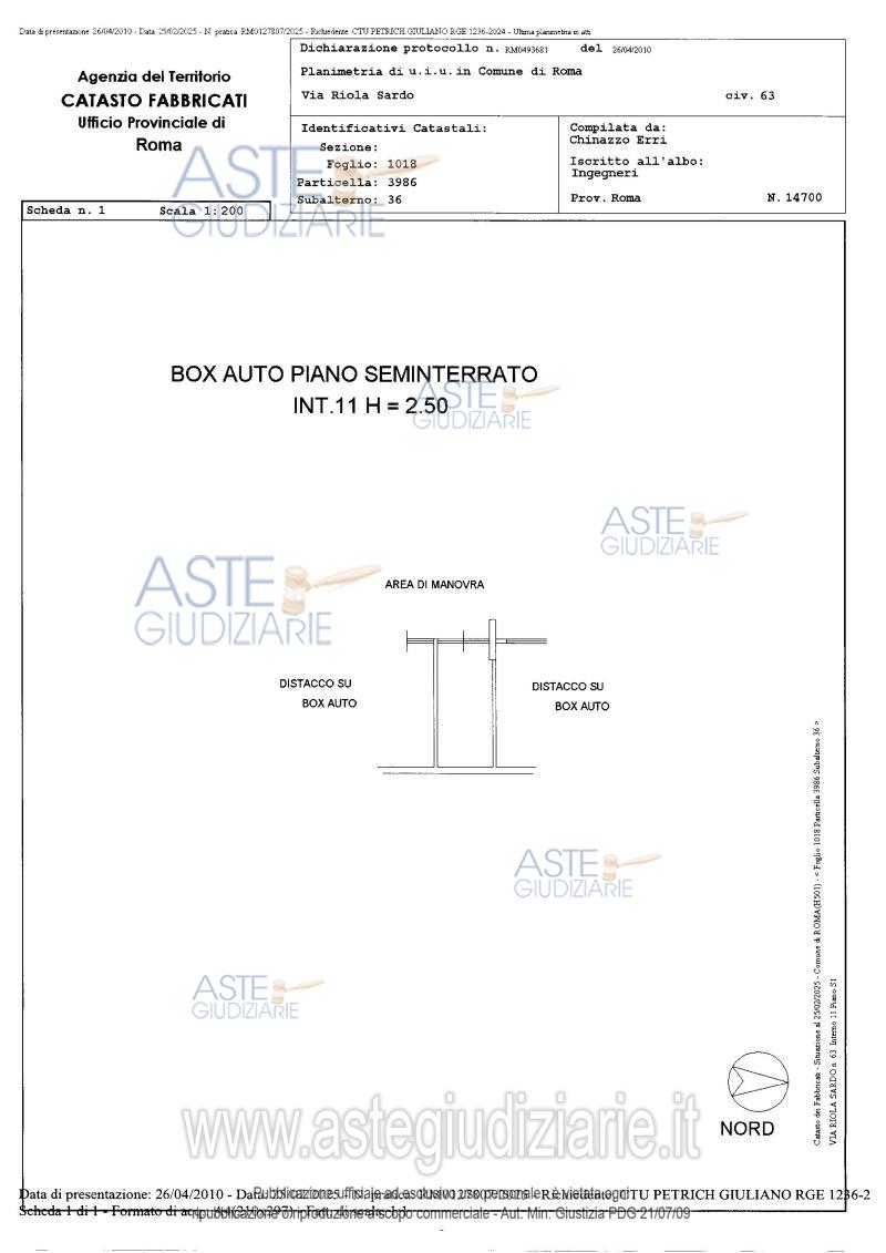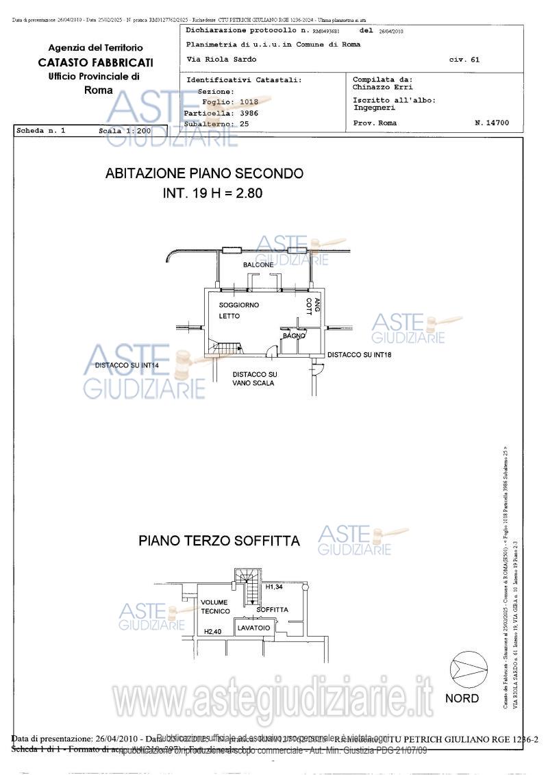 Vendita all'asta Senza incanto, con gara telematica asincrona - LOTTO 10: Appartamento interno 19, piano 2 – 3, sviluppantesi su due livelli. Il tutto per una superficie convenzionale complessiva di mq. 59,10 circa. Con Garage ubicato a Roma (RM) - Via Riola Sardo n° 63, interno 11, piano S1, per una superficie convenzionale complessiva di mq. 18,00 circa. Prezzo base € 104.700,00 (offerta minima € 78.525,00). Data inizio operazioni di vendita: 19/03/2026 ore 10:00. Giudice Dott. Federica D'ambrosio. Professionista delegato alla vendita Avv. Roberto Tartaglia. Custode Giudiziario Ivg Di Roma Srl - Email "pvp@visiteivgroma.it"; Tel. 0689569801. Rif. Tribunale di Roma - Espropriazione immobiliare (cartabia) n. 1236/2024