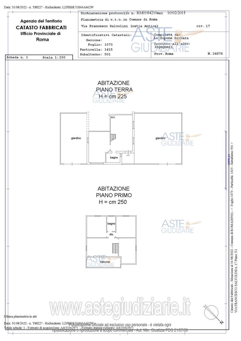 Vendita all'asta Senza incanto, con gara telematica asincrona - LOTTO UNICO: Piena proprietà su Appartamento ad uso abitazione sito in Roma, Località Ostia Antica, con accesso da Via Francesco Salvolini n° 17. Prezzo base € 182.160,00 (offerta minima € 136.620,00). Data inizio operazioni di vendita: 23/06/2026 ore 14:00. Giudice Bianca Maria Ferramosca. Professionista delegato alla vendita Avv. Andrea Belli. Custode Giudiziario Ivg Di Roma Srl - Email "pvp@visiteivgroma.it"; Tel. 0689569801. Rif. Tribunale di Roma - Esecuzione immobiliare post legge 80 n. 100152/2008