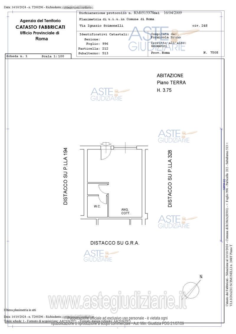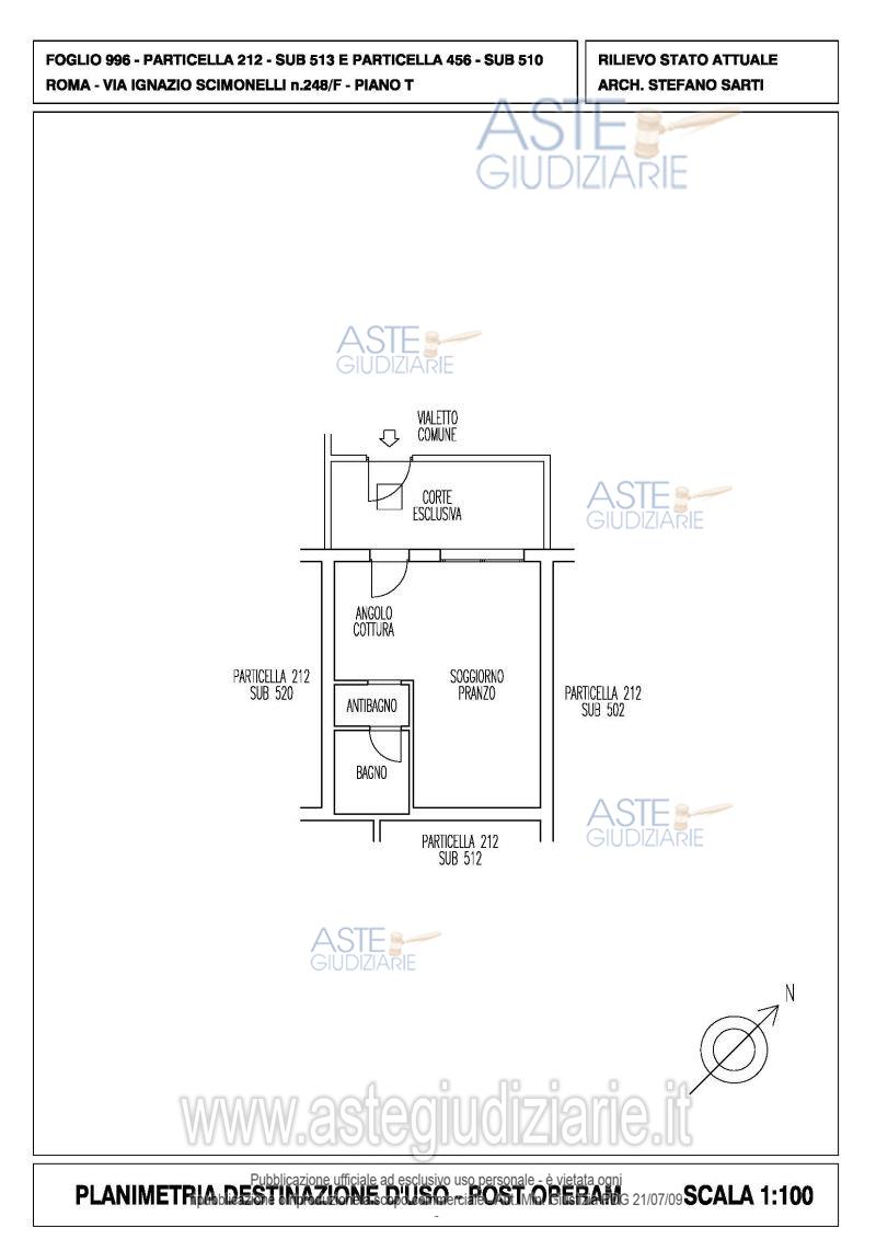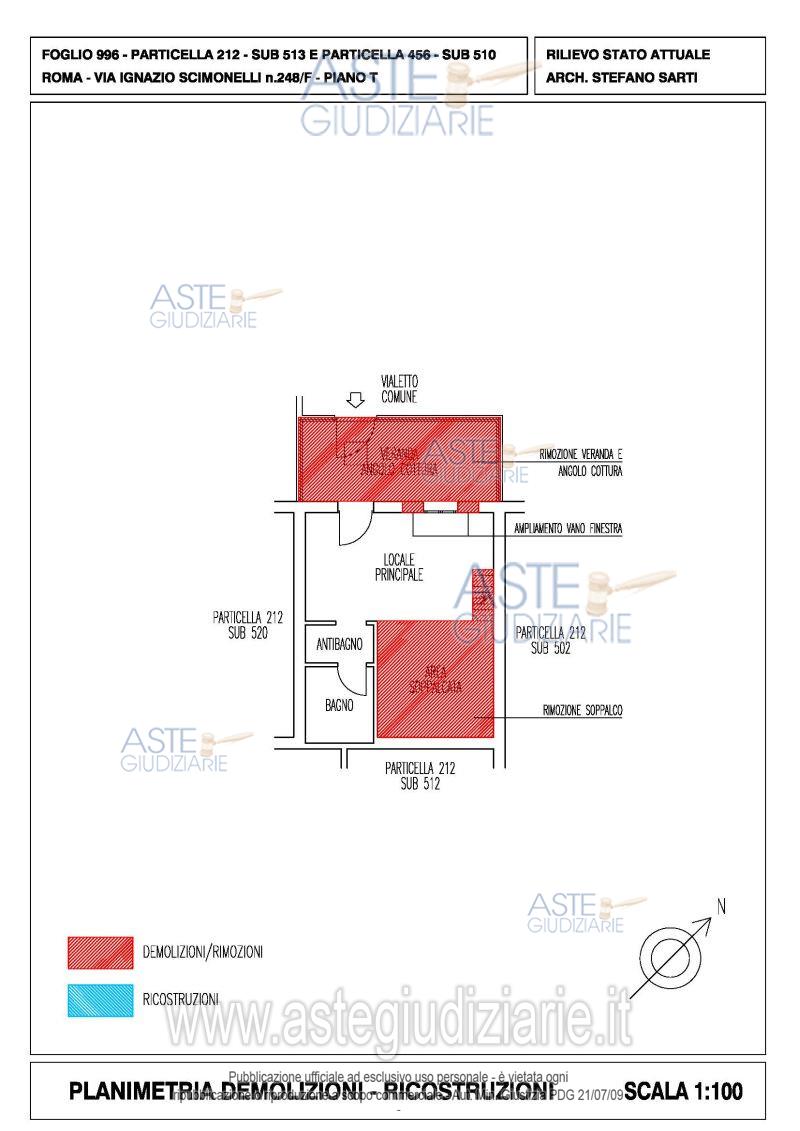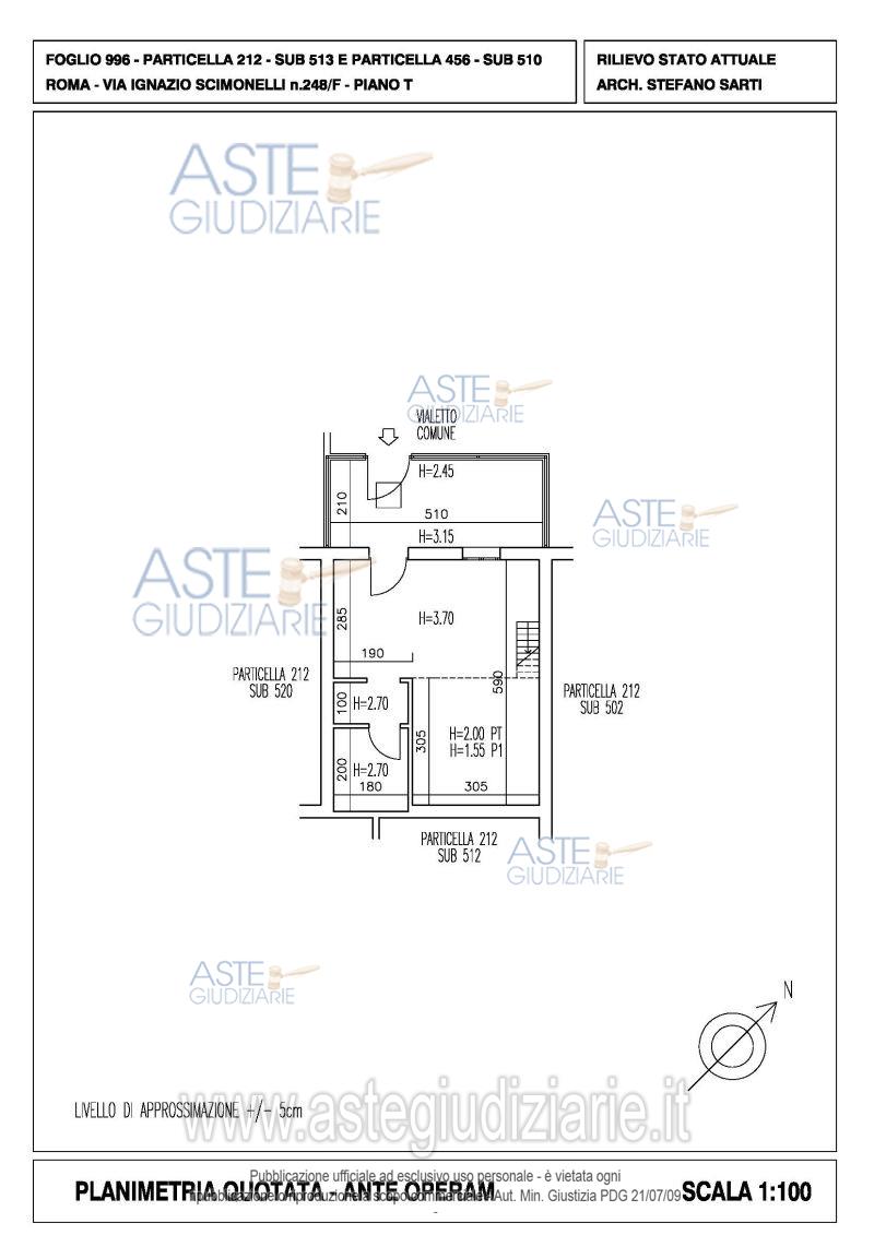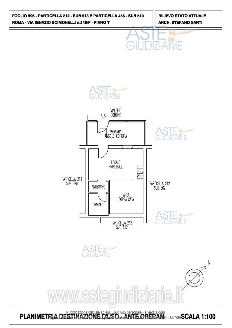 Vendita all'asta Senza incanto, con gara telematica asincrona - LOTTO UNICO: Quota pari a 1/1 del diritto di piena proprietà su appartamento con annessa corte esclusiva sito in Roma – Via Ignazio Scimonelli 248/F, int. 4, piano T, composto da veranda-angolo cottura, locale principale soppalcato, antibagno e bagno, per un tatale di mq. 32,77, compresa la corte. Prezzo base € 44.000,00 (offerta minima € 33.000,00). Data inizio operazioni di vendita: 25/03/2026 ore 10:00. Giudice Dott. Romolo Ciufolini. Professionista delegato alla vendita Dott. Marika Christopulos. Custode Giudiziario Ivg Di Roma Srl - Email "pvp@visiteivgroma.it"; Tel. 0689569801. Rif. Tribunale di Roma - Esecuzione immobiliare post legge 80 n. 1215/2022