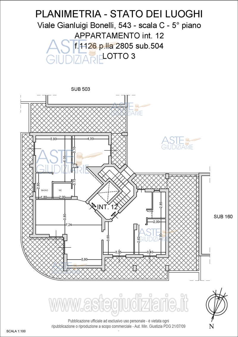 Vendita all'asta Senza incanto, con gara telematica asincrona - LOTTO 3: appartamento di mq. 120 c.a. commerciali sito in Roma – Via Gianluigi Bonelli n. 543 scala C piano V int. 12 – – di fatto diviso in due appartamenti collegati tra loro da una porta interna in legno. + BOX AUTO+CANTINA. Prezzo base € 438.000,00 (offerta minima € 328.500,00). Data inizio operazioni di vendita: 11/03/2026 ore 15:00. Giudice Dott. Giuseppe Lauropoli. Professionista delegato alla vendita Avv. Antonella Scano. Custode Giudiziario Ivg Di Roma - Email "pvp@visiteivgroma.it"; Tel. 0689569801. Rif. Tribunale di Roma - Espropriazione immobiliare (cartabia) n. 194/2024