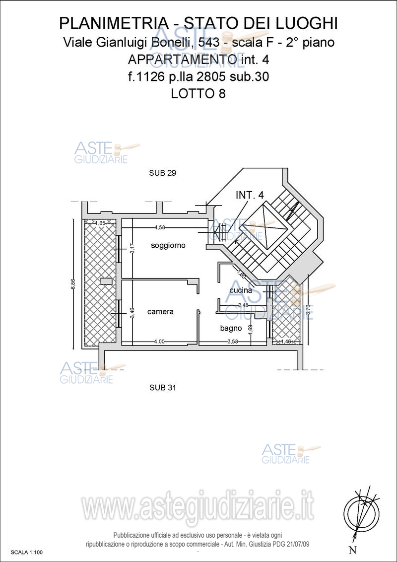 Vendita all'asta Senza incanto, con gara telematica asincrona - LOTTO 8: Quota pari a 1/1 del diritto di proprietà su appartamento di mq. 55 c.a. commerciali sito in Roma – Via Gianluigi Bonelli n. 543 scala F piano II int. 4 così composto: soggiorno, camera, bagno, disimpegno, cucina, due balconi; box auto n. 18 di mq. 21 commerciali ubicato al piano S1. Prezzo base € 205.000,00 (offerta minima € 153.750,00). Data inizio operazioni di vendita: 11/03/2026 ore 15:00. Giudice Dott. Giuseppe Lauropoli. Professionista delegato alla vendita Avv. Antonella Scano. Custode Giudiziario Ivg Di Roma - Email "pvp@visiteivgroma.it"; Tel. 0689569801. Rif. Tribunale di Roma - Espropriazione immobiliare (cartabia) n. 194/2024