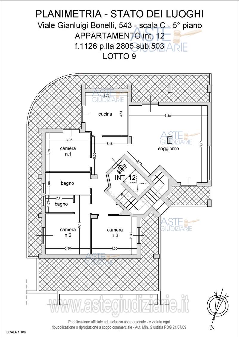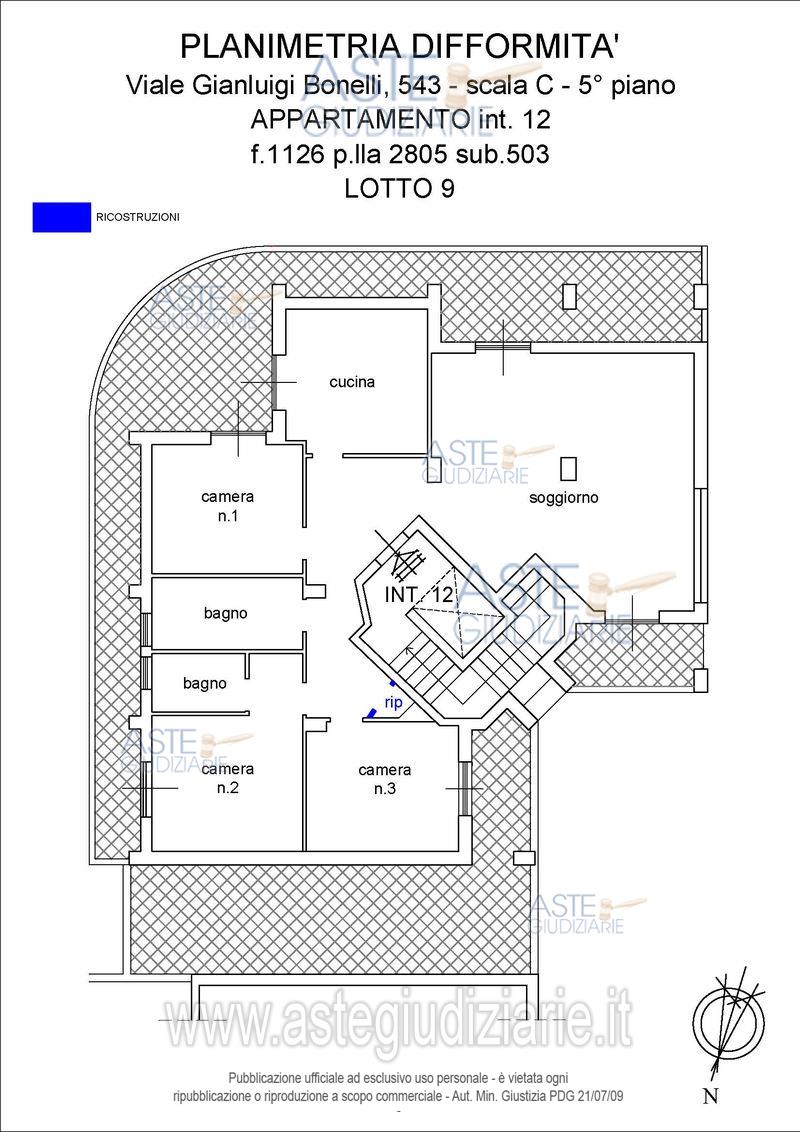 Vendita all'asta Senza incanto, con gara telematica asincrona - LOTTO 9: Quota pari a 1/1 del diritto di proprietà su appartamento di mq. 175 c.a. commerciali sito in Roma – Via Gianluigi Bonelli n. 543 scala F piano V int. 12 – così composto: cucina, ampio soggiorno, disimpegno, tre camere, due bagni, un ripostiglio, un balcone e due terrazzi Nella parte semicircolare il terrazzo è dotato di vetrate scorrevoli tipo VEPA (vetrate panoramiche amovibili).; box auto n. 23 di mq. 28 commerciali ubicato al piano S1; cantina n. 18 di mq. 6 commerciali ubicata al piano S1. Prezzo base € 540.000,00 (offerta minima € 405.000,00). Data inizio operazioni di vendita: 11/03/2026 ore 15:00. Giudice Dott. Giuseppe Lauropoli. Professionista delegato alla vendita Avv. Antonella Scano. Custode Giudiziario Ivg Di Roma - Email "pvp@visiteivgroma.it"; Tel. 0689569801. Rif. Tribunale di Roma - Espropriazione immobiliare (cartabia) n. 194/2024