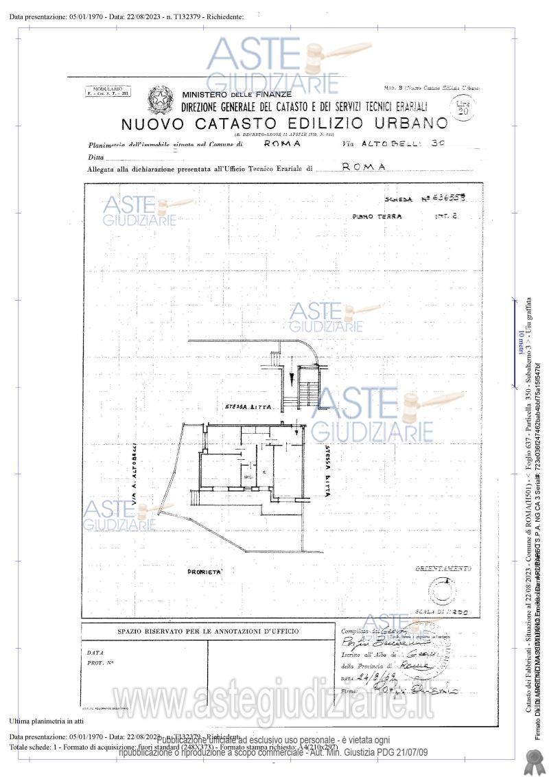 Vendita all'asta Senza incanto, con gara telematica asincrona - LOTTO UNICO: 1/1 proprietà compendio in Roma – app.to via A.Altobelli 30, P rialz. int. 2: sogg/ingr, cucina, wc, corridoio, 2 letto, bagno, giardino, rip + 2 sup. scoperte. App. mq 100, balconi 28,21, giardino 70,70, ripostiglio 2,02 mq lordi circa. CF di Roma foglio 637 part 350, sub 3 e part 414, Cat A/2 – p. auto scop. via Altobelli, 28, PT int. 6, mq 12 circa. CF di Roma foglio 637 part 275, sub 507, Cat C/6App.to difforme dalla licenza edilizia e planimetria catastale.Immobile occupato dall’esecutato. Prezzo base € 312.000,00 (offerta minima € 234.000,00). Data inizio operazioni di vendita: 14/04/2026 ore 14:00. Giudice Federica D'ambrosio. Professionista delegato alla vendita Avv. Elena Fatale. Custode Giudiziario Ivg Di Roma Srl - Email "pvp.richiestavisita@ivgroma.it"; Tel. 0689569801. Rif. Tribunale di Roma - Esecuzione immobiliare post legge 80 n. 1986/2011