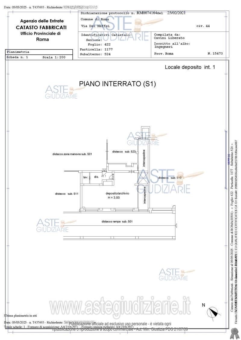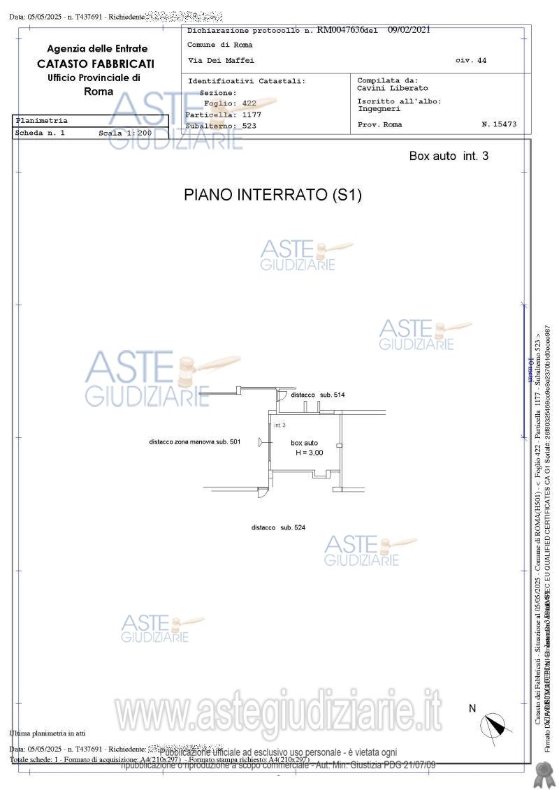 Vendita all'asta Senza incanto, con gara telematica asincrona - LOTTO UNICO: Quota 1/1 del diritto di intera proprietà su complesso immobiliare sito in Roma Via dei Maffei 42 strada privata cui si accede da cancello carrabile su Via Aurelia così compostoAppartamento sub 506 P.T e 1° catastale su 2 livelli int 5.Box auto n10 sub 520 Via dei Maffei 44 P. S1.Box auto sub 523 Via dei Maffei 44 S1 n 3.Locale deposito sub 524 Via dei Maffei 42-44 P. S1 n 1.Box auto sub 527 Via dei Maffei 42 carrabile da rampa e da Via dei Maffei 44 P. S2 int A. Area urbana di accesso a immobili descritti. Prezzo base € 325.000,00 (offerta minima € 243.750,00). Data inizio operazioni di vendita: 25/03/2026 ore 10:00. Giudice D'ambrosio. Professionista delegato alla vendita Avv. Tommaso Borseti. Custode Giudiziario Ivg Di Roma Srl - Email "pvp@visiteivgroma.it"; Tel. 0689569801. Rif. Tribunale di Roma - Espropriazione immobiliare (cartabia) n. 1278/2024