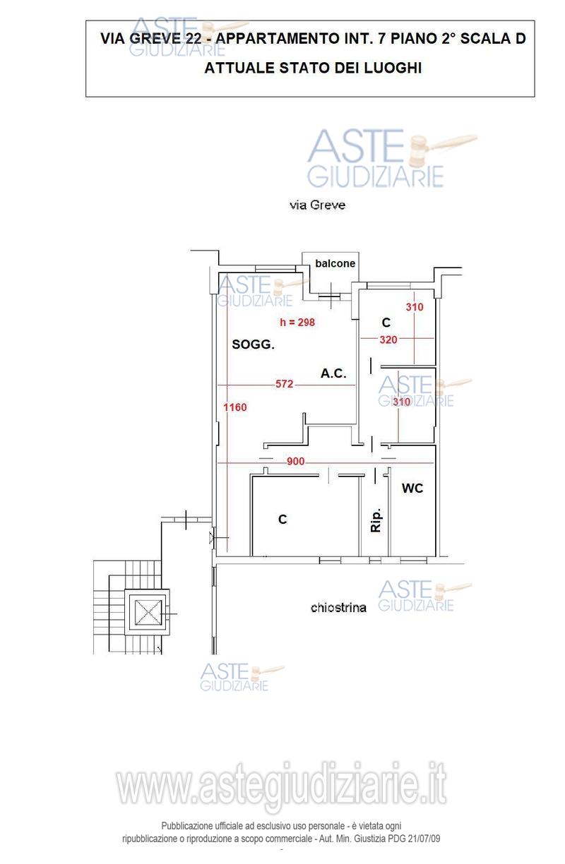 Vendita all'asta Senza incanto, con gara telematica asincrona - LOTTO 1: Piena proprietà su appartamento sito in Roma, Via Greve, 22, Scala D, piano 2 int. 7, composto da ingresso, soggiorno con zona cucina comunicante con balcone, disimpegno, due camere, bagno, ripostiglio per complessivi mq 100 (superficie interna calpestabile) – sup catastale 69 mq circa. L’immobile presenta delle difformità per la regolarizzazione delle quali sono stimati costi di circa € 14.000,00. Occupato dalla parte esecutata. Non potrà emettersi ordine di liberazione prima del decreto di trasferimento. Prezzo base € 164.000,00 (offerta minima € 123.000,00). Data inizio operazioni di vendita: 14/04/2026 ore 15:00. Giudice Dott. Romolo Ciufolini. Professionista delegato alla vendita Avv. Andrea Ordine. Custode Giudiziario Ivg Di Roma Srl - Email "pvp@visiteivgroma.it"; Tel. 0689569801. Rif. Tribunale di Roma - Espropriazione immobiliare (cartabia) n. 788/2024