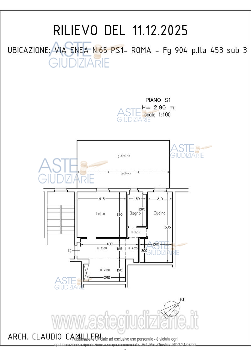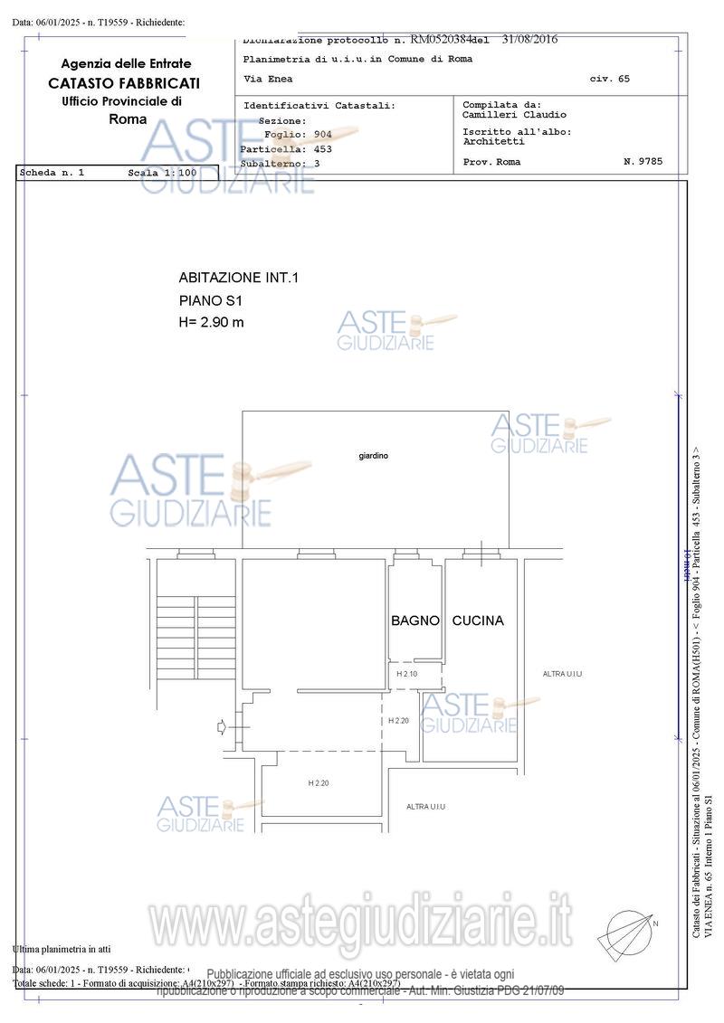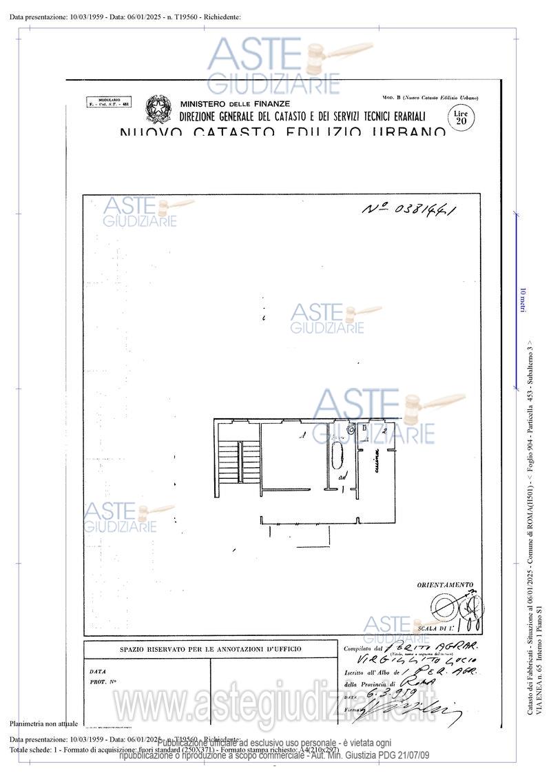 Vendita all'asta Senza incanto, con gara telematica asincrona - LOTTO UNICO: Quota pari a 1/1 del diritto di proprietà dell’appartamento sito in Roma (RM), Via Enea n. 65, posto al piano S1, interno 1. Prezzo base € 190.000,00 (offerta minima € 142.500,00). Data inizio operazioni di vendita: 14/05/2026 ore 14:00. Giudice Dott. Miriam Iappelli. Professionista delegato alla vendita Avv. Alessandra Tuzj. Custode Giudiziario Ivg Di Roma Srl - Email "pvp@visiteivgroma.it"; Cell. 0689569801. Rif. Tribunale di Roma - Esecuzione immobiliare post legge 80 n. 1203/2015