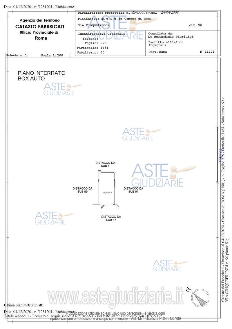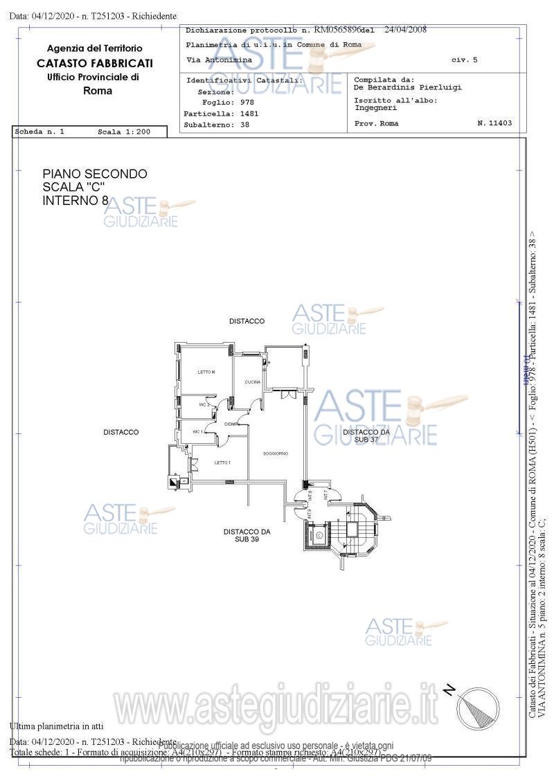 Vendita all'asta Senza incanto, con gara telematica asincrona - LOTTO UNICO: Quota pari a 1/1 del diritto di intera proprietà su appartamento sito in Comune di Roma (RM), Via Antonimina n.5, Scala C, piano 2^, interno 8 e su annesso box auto pertinenziale con accesso da Via Cinquefrondi n.90, piano S1. L’appartamento ha destinazione d’uso catastale di civile abitazione, ed è composto da un soggiorno, da una cucina, da un disimpegno, da due camere da letto, da due servizi e da due balconi per complessivi mq. 93,00. Il box auto ha una consistenza di 15 mq. Prezzo base € 355.000,00 (offerta minima € 266.250,00). Data inizio operazioni di vendita: 22/04/2026 ore 14:00. Giudice Dott. Fernando Scolaro. Professionista delegato alla vendita Avv. Anita Pilotti. Custode Giudiziario Ivg Di Roma Srl - Email "pvp@visiteivgroma.it"; Tel. 0689569801. Rif. Tribunale di Roma - Esecuzione immobiliare post legge 80 n. 1351/2019