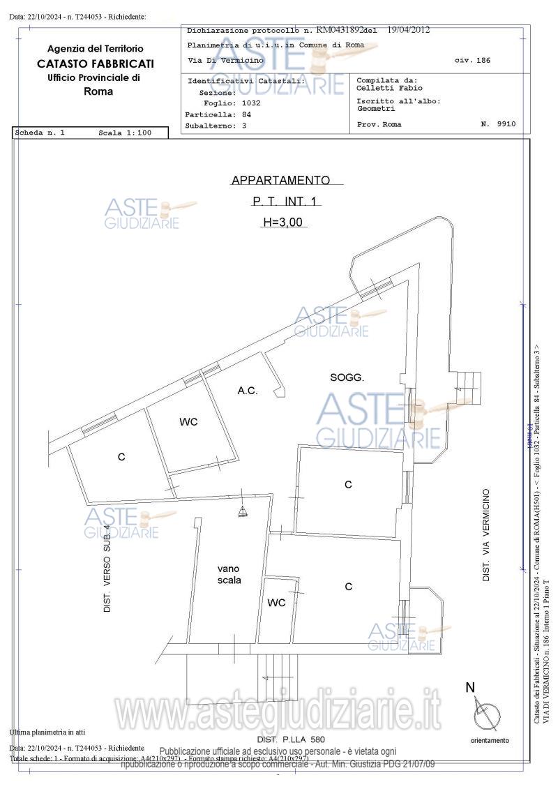 Vendita all'asta Senza incanto, con gara telematica asincrona - LOTTO UNICO: quota pari a 1/1 diritto proprietà su app.to in Roma, Via Vermicino n.186 int.1 p. rialzato catastalmente piano terra - mq complessivi 108,50. in corso di liberazione all'esito aggiudicazione. Prezzo base € 176.000,00 (offerta minima € 132.000,00). Data inizio operazioni di vendita: 27/05/2026 ore 14:00. Giudice Lauropoli. Professionista delegato alla vendita Avv. Laura Romano. Custode Giudiziario Ivg Roma - Email "ivgroma@associazioneivg.legalmail.it"; Tel. 0683751500. Rif. Tribunale di Roma - Esecuzione immobiliare post legge 80 n. 134/2024