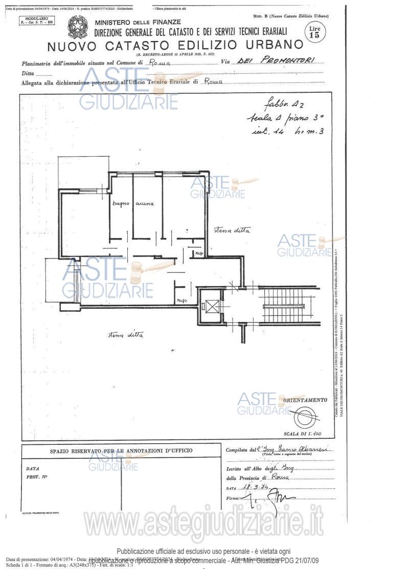 Vendita all'asta Senza incanto, con gara telematica asincrona - LOTTO 1: Quota pari a 1/1 del diritto di piena proprietà di appartamento per civile abitazione sito in Roma (RM) Viale dei Promontori 40, edificio A2, scala A, interno 14, piano 3, composto da ingresso con ripostiglio, soggiorno con balcone, due camere di cui una con balcone, un bagno e una cucina, per una superficie convenzionale complessiva di 107,48 mq. Prezzo base € 151.000,00 (offerta minima € 113.250,00). Data inizio operazioni di vendita: 24/06/2026 ore 14:00. Giudice Dott. Cristina Liverani. Professionista delegato alla vendita Avv. Maria Gualtieri. Custode Giudiziario Ivg Di Roma - Email "pvp@visiteivgroma.it"; Tel. 0689569801. Rif. Tribunale di Roma - Espropriazione immobiliare (cartabia) n. 823/2023
