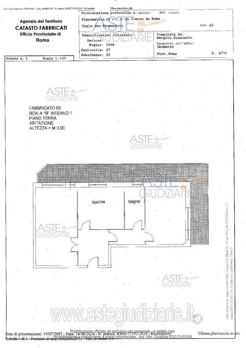 Vendita all'asta Senza incanto, con gara telematica asincrona - LOTTO 3: Quota pari a 1/1 del diritto di piena proprietà di appartamento per civile abitazione sito in Roma (RM) Viale dei Promontori 40, edificio B2, scala B, interno 1, piano T, composto da ingresso, disimpegno, soggiorno, una camera, un bagno e una cucina, area esterna pavimentato ad uso esclusivo, per una superficie convenzionale complessiva di 89,70 mq. Prezzo base € 164.000,00 (offerta minima € 123.000,00). Data inizio operazioni di vendita: 24/06/2026 ore 14:00. Giudice Dott. Cristina Liverani. Professionista delegato alla vendita Avv. Maria Gualtieri. Custode Giudiziario Ivg Di Roma - Email "pvp@visiteivgroma.it"; Tel. 0689569801. Rif. Tribunale di Roma - Espropriazione immobiliare (cartabia) n. 823/2023