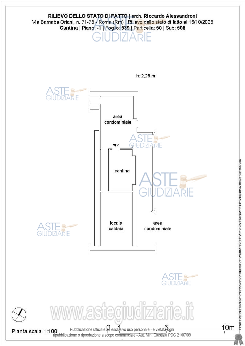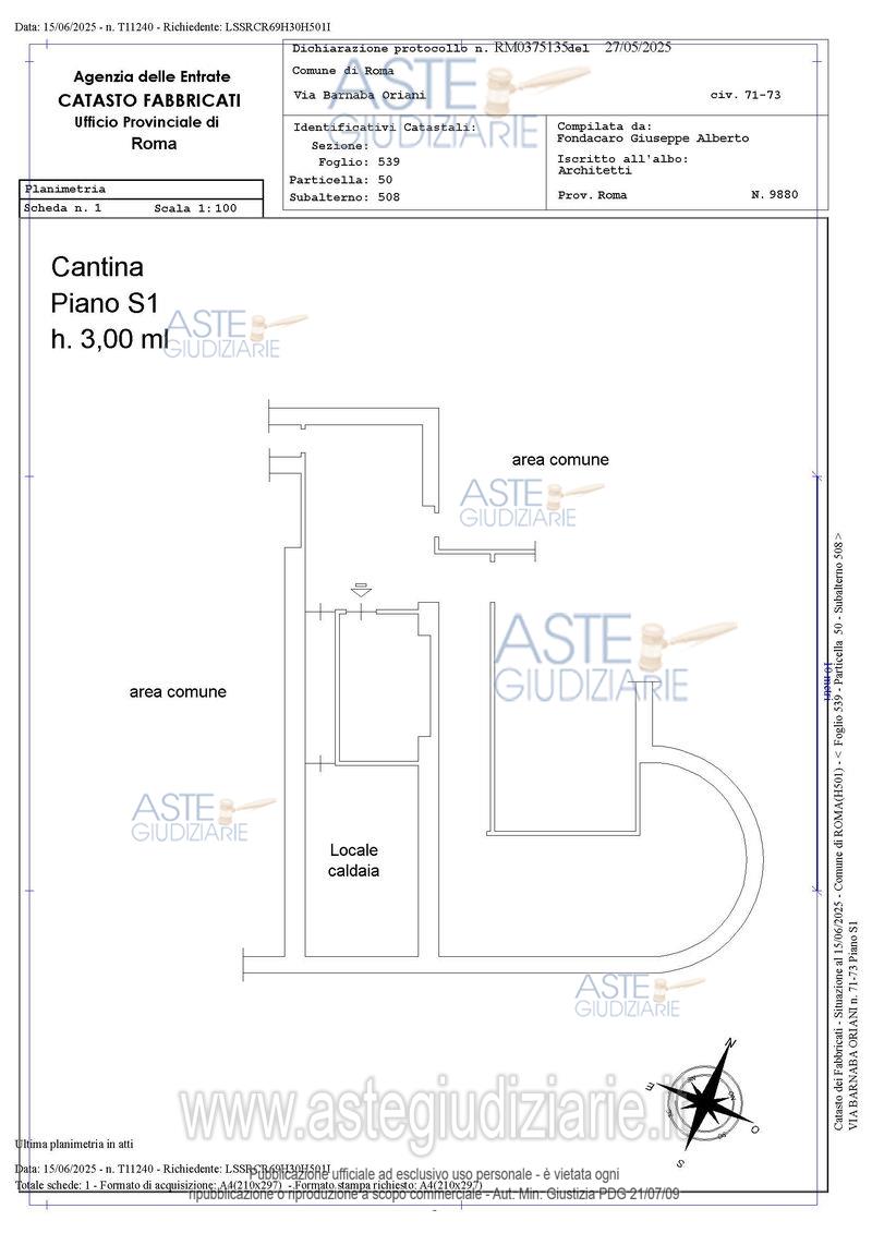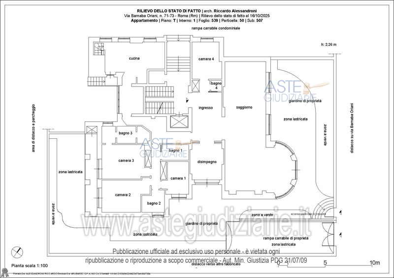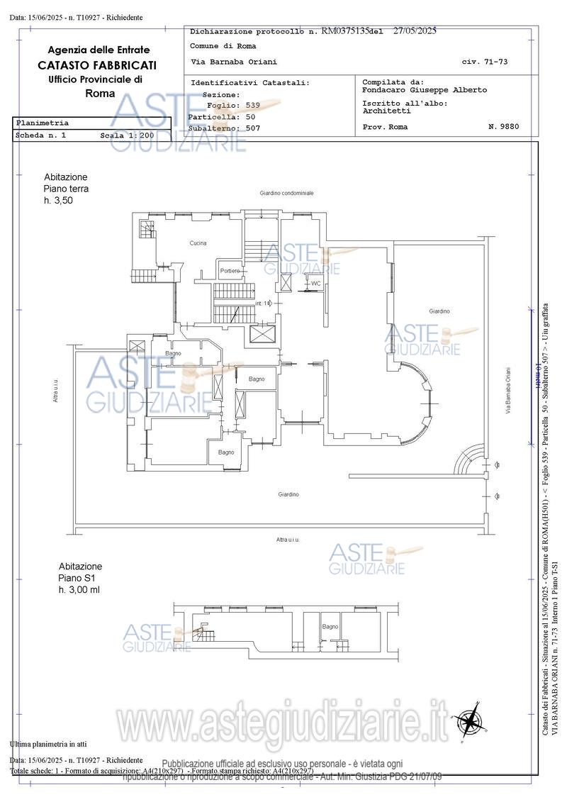 Vendita all'asta Senza incanto, con gara telematica asincrona - LOTTO 1: Quota pari a 1/1 del diritto di piena proprietà su immobile sito in Roma, in Via Barnaba Oriani nn. 71-73, interno 1, piano T-S1 con giardino e munito di cantina e box auto. Prezzo base € 1.900.000,00 (offerta minima € 1.425.000,00). Data inizio operazioni di vendita: 16/06/2026 ore 15:00. Giudice Federica D'ambrosio. Professionista delegato alla vendita Avv. Maria Ancora. Custode Giudiziario Ivg Di Roma Srl - Email "pvp@visiteivgroma.it"; Tel. 0689569801. Rif. Tribunale di Roma - Espropriazione immobiliare (cartabia) n. 15/2025