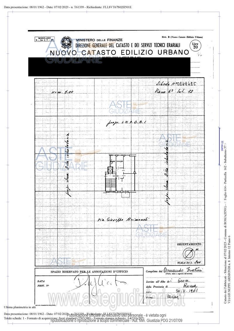 Vendita all'asta Senza incanto, con gara telematica asincrona - LOTTO UNICO: Piena proprietà su appartamento sito in Roma – Via Giuseppe Arimondi, n. 8, Scala “C”, piano sesto, int. 12, composto da ingresso, camera da letto con balcone, camera da letto con finestra, cameretta, cucina, bagno, balcone, per complessivi mq. 60 circa di superficie commerciale. Prezzo base € 148.000,00 (offerta minima € 111.000,00). Data inizio operazioni di vendita: 01/07/2026 ore 14:00. Giudice Dott. Cristina Liverani. Professionista delegato alla vendita Avv. Pasquale Tuccillo. Custode Giudiziario Ivg Di Roma Srl - Email "pvp@visiteivgroma.it"; Tel. 0689569801. Rif. Tribunale di Roma - Contenzioso civile n. 23942/2025