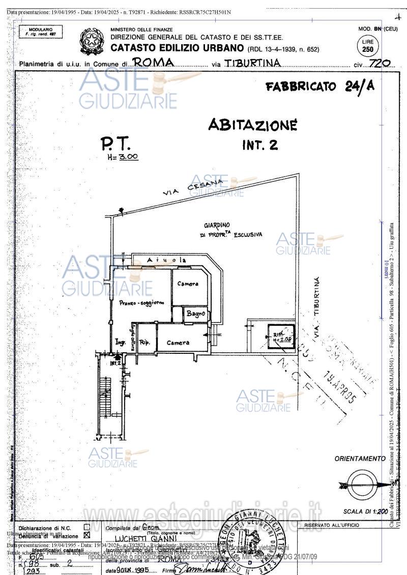 Vendita all'asta Senza incanto, con gara telematica asincrona - LOTTO UNICO: Via Tiburtina n.720, edificio 24, scala A, interno 2, piano Terra anche con ingresso privato con cancello pedonale su Via Luigi Cesana n.1 e precisamente: appartamento composto da soggiorno, cucina, due camere, un bagno ed un ripostiglio; completa la proprietà un giardino esterno su cui insiste un ripostiglio. Il tutto per una superficie convenzionale complessiva di circa mq. 135,55. Prezzo base € 291.000,00 (offerta minima € 218.250,00). Data inizio operazioni di vendita: 24/06/2026 ore 14:00. Giudice Russo. Professionista delegato alla vendita Avv. Alessandro Paoletti. Custode Giudiziario Ivg Di Roma Srl - Email "pvp@visiteivgroma.it"; Tel. 0683751500. Rif. Tribunale di Roma - Espropriazione immobiliare (cartabia) n. 861/2024