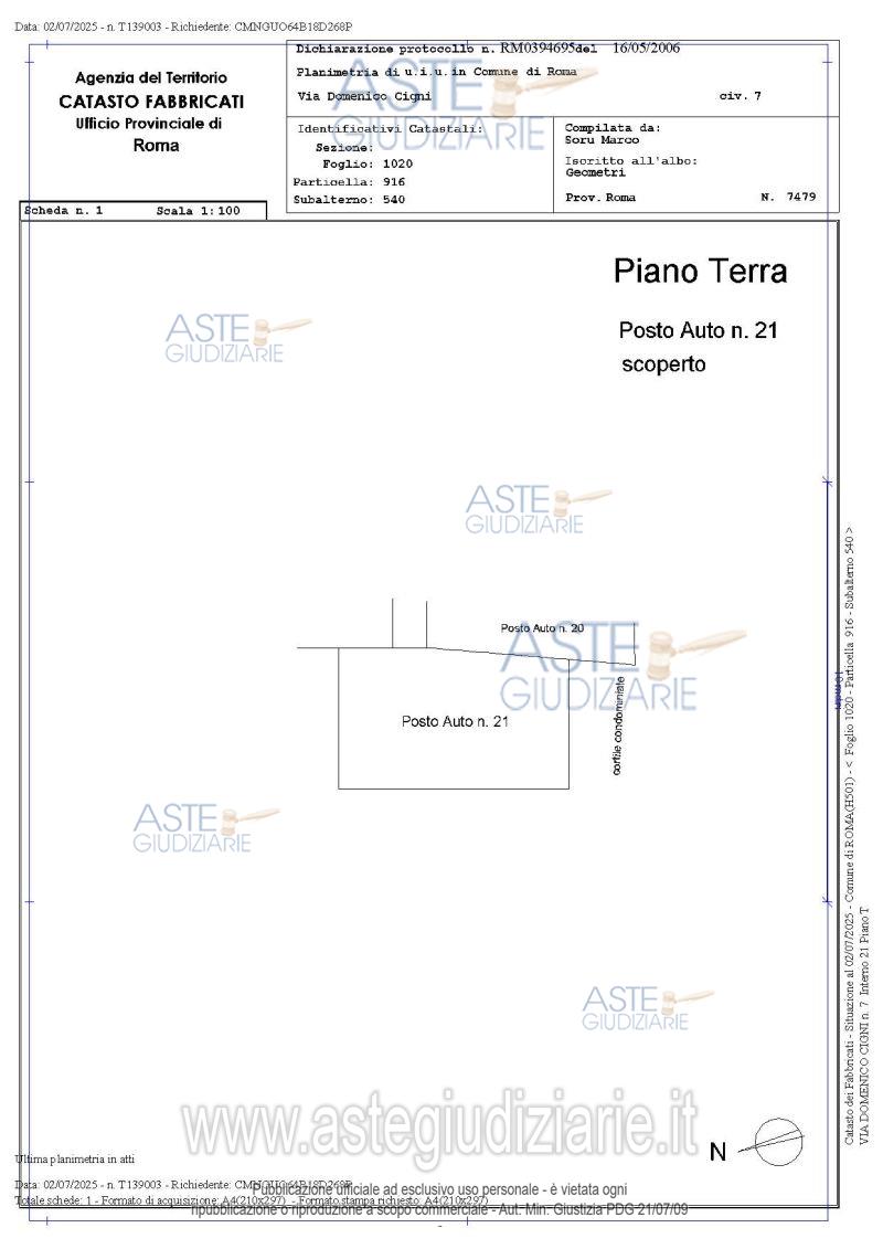 Vendita all'asta Senza incanto, con gara telematica asincrona - LOTTO UNICO: Appartamento, piano 1 e 2, int. 6, composto al piano primo da zona giorno (costituita in parte da locali cantine unite all’appartamento e quindi con destinazione non residenziale) con zona cucina e bagno, balcone terrazzo esterno e scala di collegamento interno che conduce al piano secondo; al piano secondo da due camere mansardate, da un bagno, da un sottotetto chiuso e reso un ripostiglio e da un terrazzo; il tutto per mq 75 circa di superficie convenzionale, box e posto auto. Prezzo base € 142.000,00 (offerta minima € 106.500,00). Data inizio operazioni di vendita: 15/07/2026 ore 14:00. Giudice Ferramosca. Professionista delegato alla vendita Avv. Aldo Cimmino. Custode Giudiziario Ivg Di Roma Srl - Email "pvp@visiteivgroma.it"; Tel. 0689569801. Rif. Tribunale di Roma - Esecuzione immobiliare post legge 80 n. 143/2021