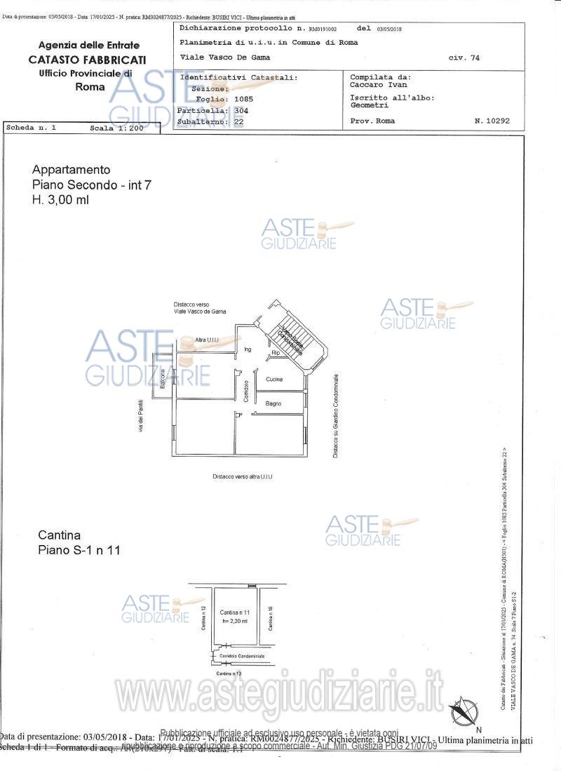 Vendita all'asta Senza incanto, con gara telematica asincrona - LOTTO UNICO: Piena proprietà di appartamento sito in Roma, Viale Vasco De Gama 74-Ostia Lido, piano secondo senza ascensore, composto di ingresso, soggiorno, 2 camere da letto, cucina, un bagno, un ripostiglio, un balcone per complessivi mq. 89, oltre cantina al piano seminterrato, Categoria A/3 , Cl.3, R.C. euro 671,39, occupato da terzi in assenza di titolo opponibile. Costruito in virtù di licenza edilizia n. 522 del 25/03/1955, Certificato di agibilità rilasciato in data 07/03/1956 n. 322 . Prezzo base € 181.136,00 (offerta minima € 135.852,00). Data inizio operazioni di vendita: 22/07/2026 ore 14:00. Giudice: Dott. Giuseppe Lauropoli.
