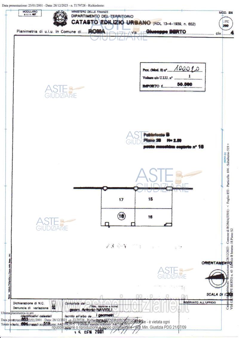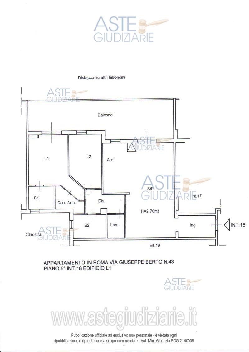 Vendita all'asta Senza incanto, con gara telematica asincrona - LOTTO UNICO: Appartamento in Roma Via Giuseppe Berto 43, edificio L1, interno 18, piano 5 per una superficie convenzionale complessiva di mq. 117,65 circa, con Posto auto nell’edificio B, interno 18, piano S2, per una superficie convenzionale complessiva di mq. 18,81 circa. Prezzo base € 355.000,00 (offerta minima € 266.250,00). Data inizio operazioni di vendita: 14/07/2026 ore 10:00. Giudice: Liverani.