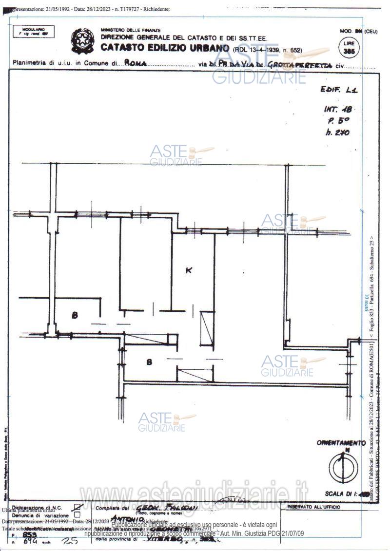 Custode Giudiziario: Ivg Di Roma Srl - Email "pvp@visiteivgroma.it"; Tel. 06/89569801.