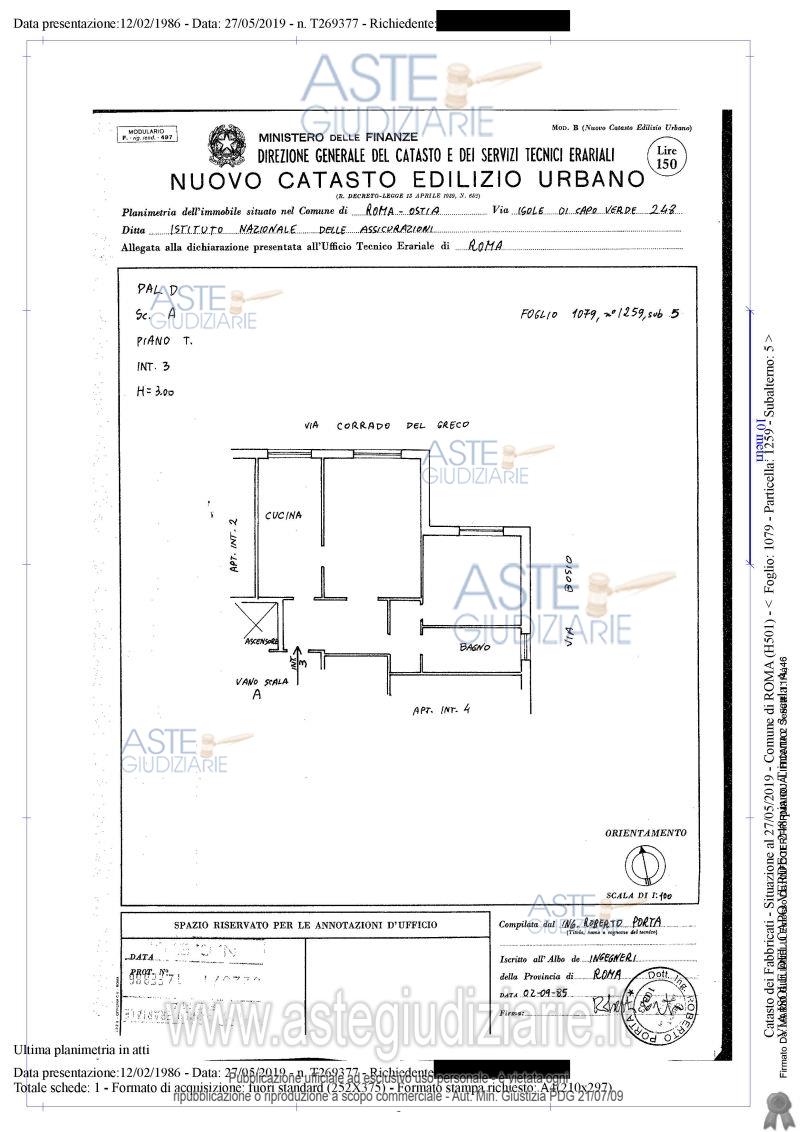 Vendita all'asta Senza incanto, con gara telematica asincrona - LOTTO UNICO:  Piena proprietà di appartamento ubicato a Roma - Via Isole del Capoverde n. 248, edificio D, scala A, interno 3, piano T posto al piano terra di un fabbricato per civili abitazione e negozi. Detto appartamento si articola in ingresso, soggiorno, una camera, cucina e servizi per complessivi n. 4 vani catastali. Prezzo base € 100.729,60 (offerta minima € 75.547,20). Data inizio operazioni di vendita: 05/11/2025 ore 11:00. Giudice Dott. Flora Mazzaro. Professionista delegato alla vendita Avv. Massimo Caravetta. Custode Giudiziario  Ivg Di Roma Srl - Email "pvp@visiteivgroma.it"; Tel. 0689569801.  Rif. Tribunale di Roma - Esecuzione immobiliare post legge 80 n. 1220/2017