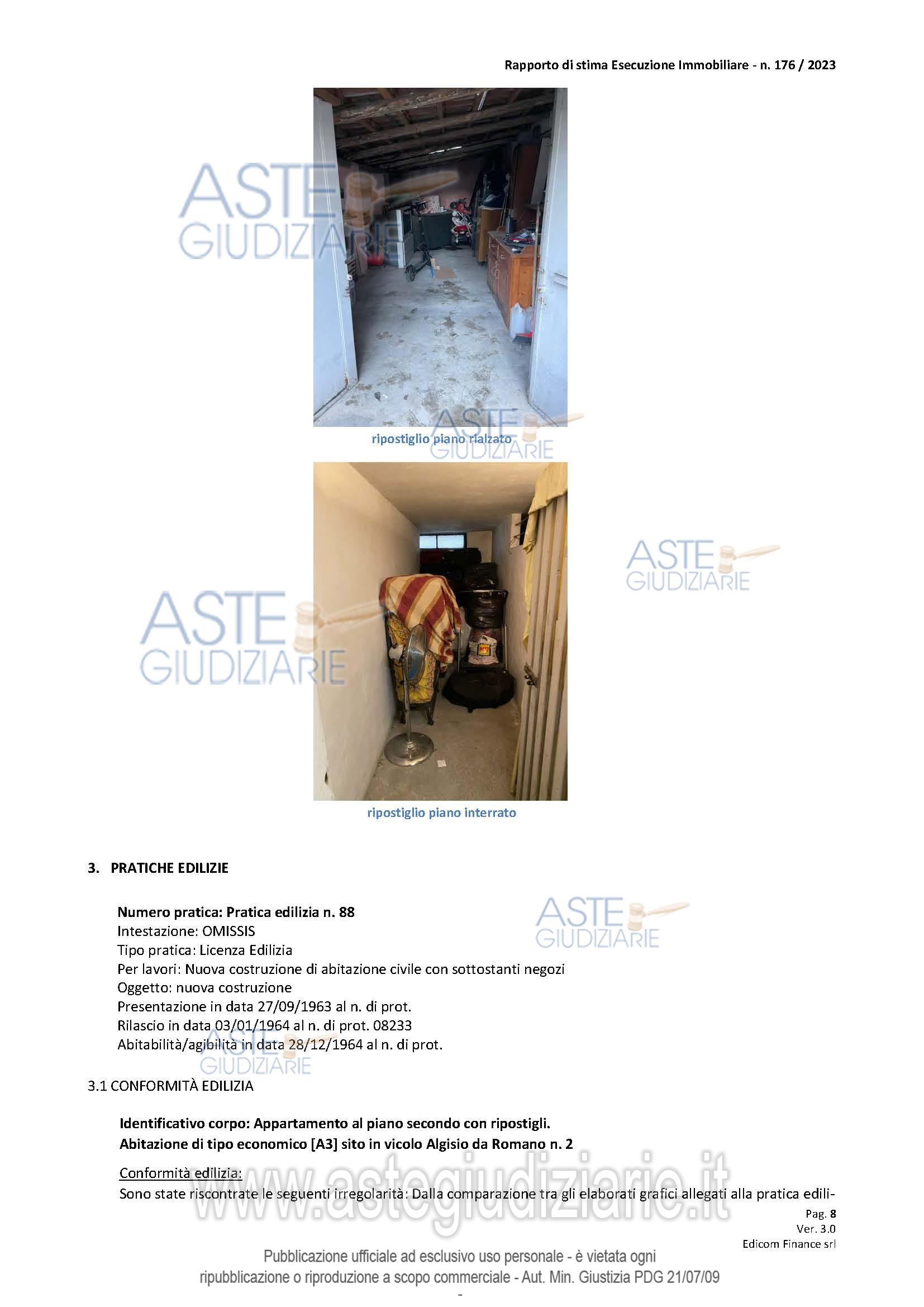 Vendita all'asta Senza incanto, con gara telematica asincrona - LOTTO UNICO: Piena proprietà, quota intera, di abitazione di tipo economico al piano secondo oltre a due ripostigli. L’appartamento è costituito da cucina, soggiorno, bagno, tre camere, disimpegno oltre ad un balcone con ripostiglio esterno. Al piano rialzato è presente un ripostiglio e al piano interrato è presente un altro ripostiglio. Prezzo base € 62.540,94 (offerta minima € 46.905,71). Data inizio operazioni di vendita: 08/01/2026 ore 15:00. Giudice Angela Randazzo. Professionista delegato alla vendita Avv. Claudia Badon - Email "avv.claudia.badon@tin.it"; Tel. 0350634961. Custode Giudiziario Dott. Luigi Gaffuri - Email "luigi@studiogaffuri.net"; Tel. 035232207. Rif. Tribunale di Bergamo - Espropriazione immobiliare (cartabia) n. 176/2023
