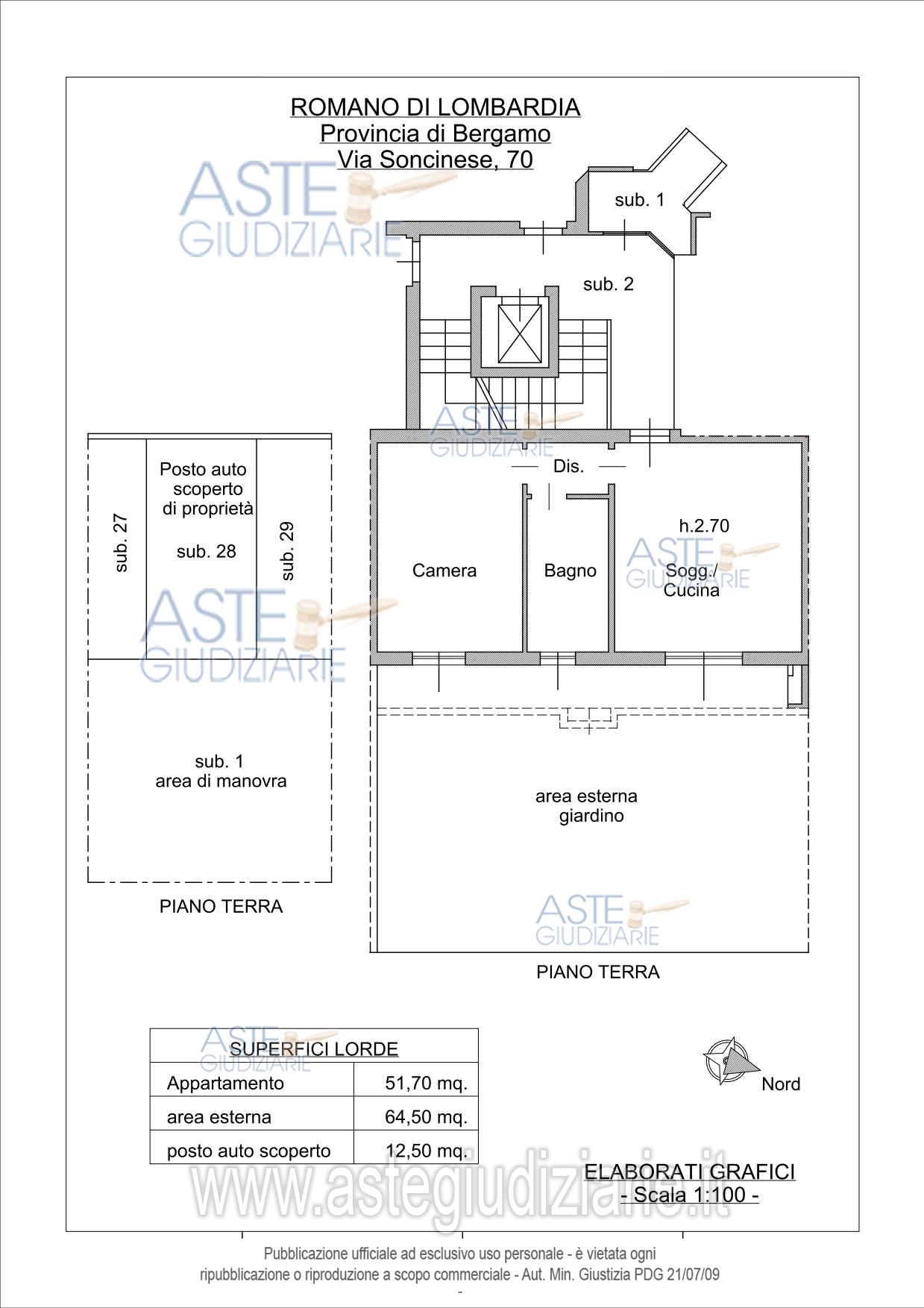Vendita all'asta Senza incanto, con gara telematica asincrona - LOTTO 1: piena proprietà di appartamento con posto auto scoperto. Prezzo base € 97.000,00 (offerta minima € 72.750,00). Data inizio operazioni di vendita: 13/05/2026 ore 12:00. Professionista delegato alla vendita Avv. Cinzia Nozza - Email "cinzia.nozza@gmail.com"; Tel. 0363221250. Custode Giudiziario Avv. Cinzia Nozza - Email "cinzia.nozza@gmail.com"; Tel. 3923912552. Rif. Tribunale di Bergamo - Espropriazione immobiliare (cartabia) n. 284/2025