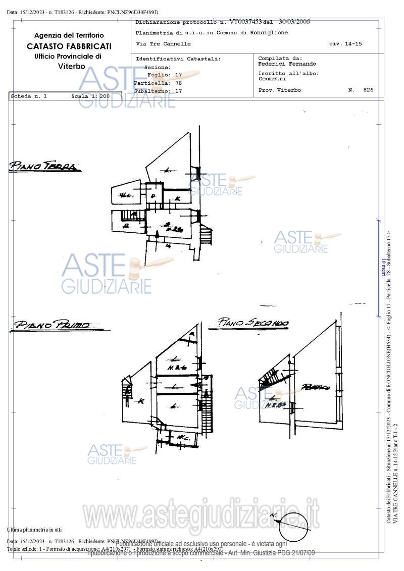 Vendita all'asta Senza incanto, con gara telematica asincrona - LOTTO 2: Piena proprietà di un fabbricato con accesso autonomo sito in Via Arco Muccetti 14-16 nel Comune di Ronciglione.Trattasi di un appartamento distribuito su tre livelli.Il piano terra è composto di quattro vani e servizio igienico per una superficie utile totale di mq 48, il primo piano è diviso in quattro vani per un totale di mq.60, il secondo piano è composto da un vano e portico ed è esteso per mq. 50.L’immobile risulta sprovvisto di impianto di riscaldamento e l’impianto elettrico è da mettere a norma. Prezzo base € 20.504,00 (offerta minima € 15.378,00). Data inizio operazioni di vendita: 28/01/2026 ore 11:40. Professionista delegato alla vendita Dott. Giuliano Bellachioma - Email "gbellachioma@omniaconsilia.it"; Tel. 0761283764. Custode Giudiziario Dott. Giuliano Bellachioma - Email "gbellachioma@omniaconsilia.it"; Tel. 0761283764. Rif. Tribunale di Viterbo - Esecuzione immobiliare post legge 80 n. 166/2023