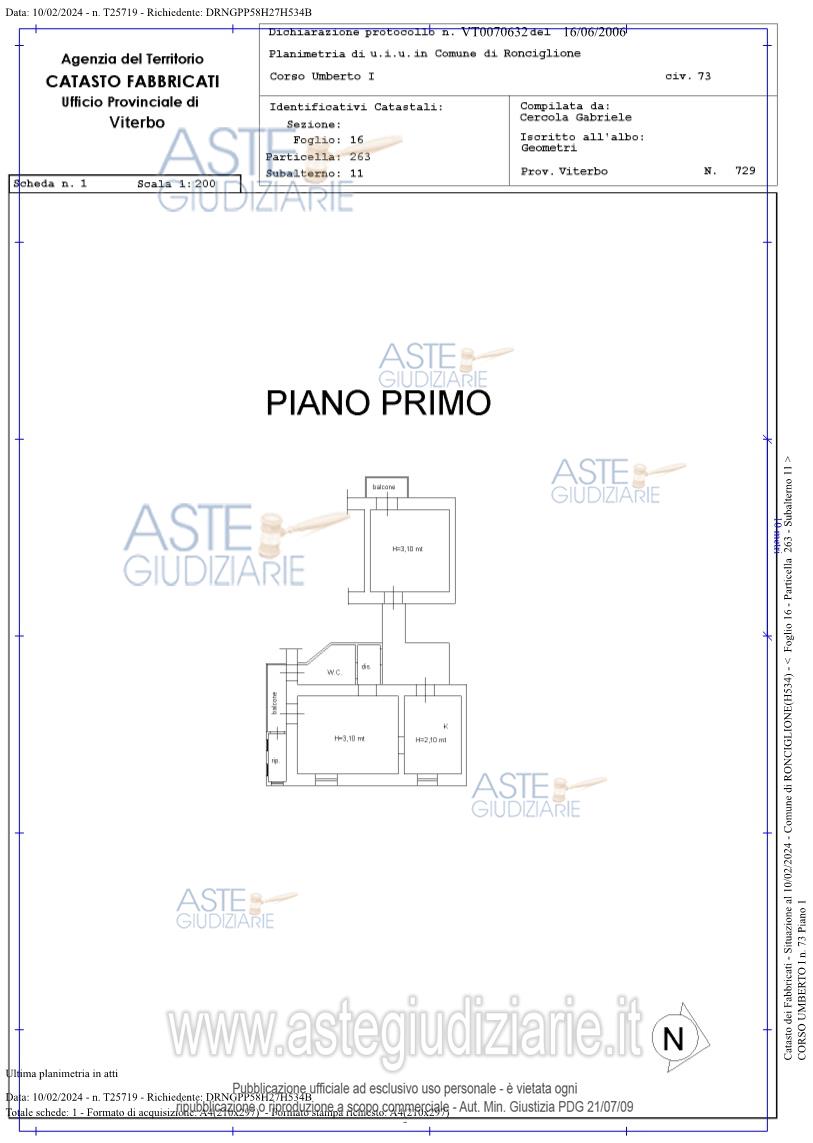 Vendita all'asta Competitiva, con gara telematica asincrona - LOTTO 1: L’unità immobiliare è costituita da una piccola abitazione ubicata al piano primo, che si sviluppa sul lato ovest del fabbricato prospiciente Corso Umberto I e sui lati sud-est che affacciano sul cortile interno. L’accesso all’unità immobiliare è ubicato sul prospetto principale di Corso Umberto I, dove si affaccia l’ingresso sulla scala comune del fabbricato. L’abitazione di tipo economico (Cat. A/3) di 4 vani catastali, si articola completamente su un unico piano primo e risulta composta da, ingresso, cucina, camera letto, bagno, ripostiglio esterno e balcone, oltre un’altra camera da letto con balcone, non comunicante direttamente con l’abitazione, a cui si accede dall’ingresso sul pianerottolo del vano scala del piano primo, comune a tutti i condomini. Prezzo base € 47.700,00 (offerta minima € 35.775,00). Data inizio operazioni di vendita: 01/04/2026 ore 10:00. Professionista delegato alla vendita Dott. Eleonora Mariano - Email "eleonora.mariano@alice.it"; Tel. 3385403254. Custode Giudiziario Dott. Eleonora Mariano - Email "eleonora.mariano@alice.it"; Tel. 3385403254. Rif. Tribunale di Viterbo - Esecuzione immobiliare n. 103/2023