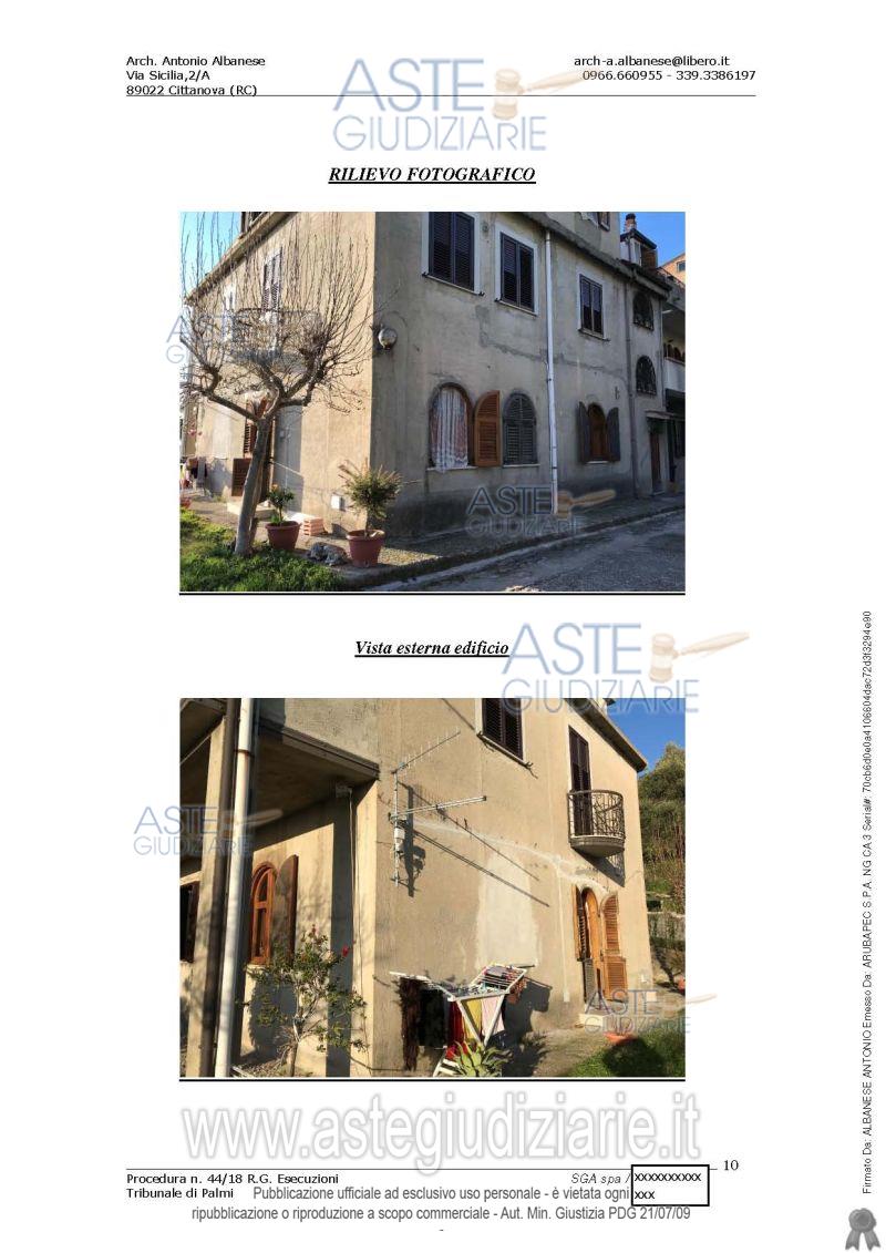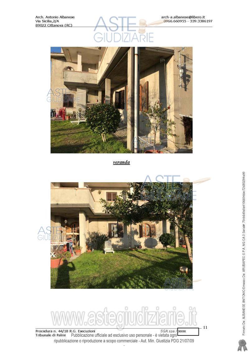 Vendita all'asta Senza incanto, con gara telematica asincrona - LOTTO UNICO: Diritto di piena proprietà sull’unità immobiliare destinata a civile abitazione consistenza vani 10, superficie catastale totale mq. 245. L’immobile è stato costruito in a seguito di licenza di costruzione edilerilasciata nel 1973, dal comune di Rosarno, tuttavia il CTU ha rilevato delle difformità dell’intera costruzione rispetto al progetto autorizzato. Prezzo base € 19.965,88 (offerta minima € 14.974,41). Data inizio operazioni di vendita: 26/11/2025 ore 11:00. Giudice Dott. Marta Caineri. Professionista delegato alla vendita Avv. Antonella Morabito - Email "avvantonellamorabito@gmail.com"; Tel. 0966611818. Custode Giudiziario Avv. Antonella Morabito - Email "avvantonellamorabito@gmail.com"; Tel. 0966611818. Rif. Tribunale di Palmi - Esecuzione immobiliare post legge 80 n. 44/2018