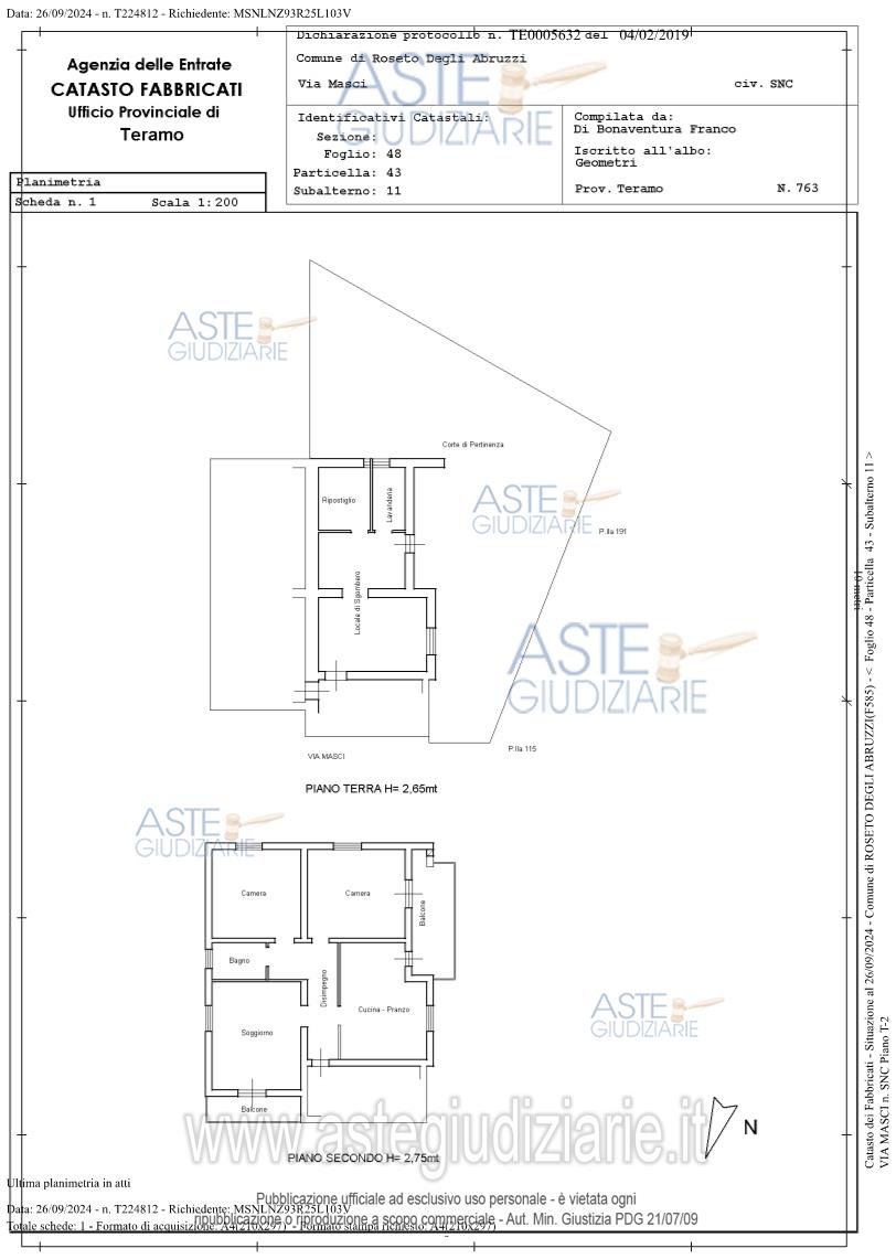 Vendita all'asta Senza incanto, con gara telematica asincrona - LOTTO UNICO: Piena proprietà su appartamento censito al catasto fabbricato al foglio 48 particella 43 subalterno 11, si sviluppa al piano terra e secondo di un fabbricato condominiale. L'appartamento, al piano secondo, si compone di: un ingresso su disimpegno, soggiorno, cucina-pranzo, due camere e due bagni, due balconi a livello, locali di sgombero al piano terra, oltre ad un corte esterna di pertinenza ad uso esclusivo. Prezzo base € 48.750,00 (offerta minima € 36.562,50). Data inizio operazioni di vendita: 25/03/2026 ore 09:30. Giudice Dott. Ninetta D'ignazio. Curatore Avv. Elisabetta Chiodi - Email "avvchiodielisabetta@gmail.com"; Cell. 3471474316; Tel. 3471474316. Rif. Tribunale di Teramo - Liquidazione controllata(cci) n. 5/2025