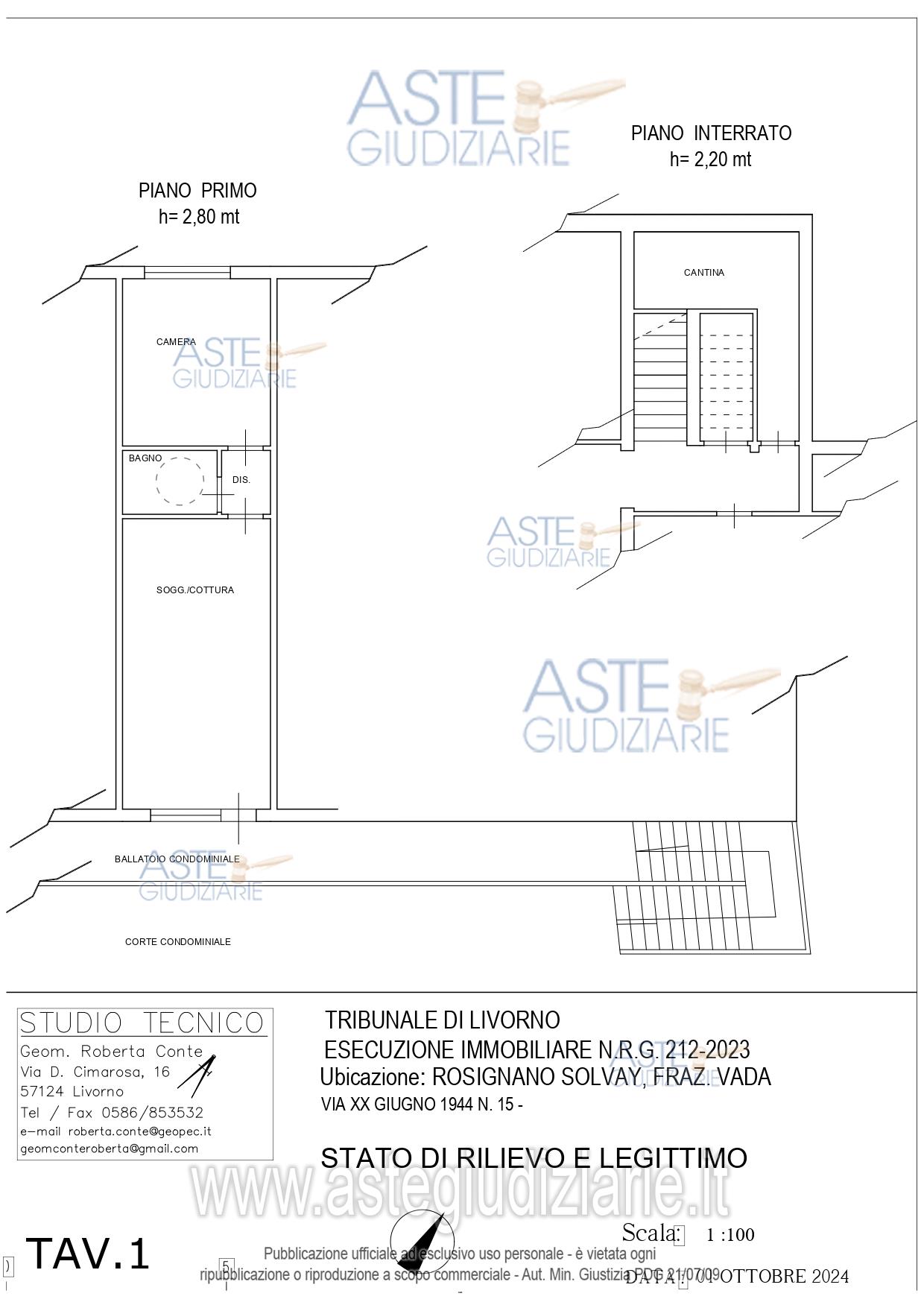 Vendita all'asta Senza incanto, con gara telematica asincrona - LOTTO 1: Unità immobiliare sito nel Comune di Rosignano Marittimo Frazione Vada, Via XX Giugno 1944 n. 15 e precisamente: Appartamento di civile abitazione al piano primo composto da cucina pranzo soggiorno, camera, disimpegno e servizio igienico, con annesso locale cantina al piano seminterrato, confinante con ballatoio comune, corte comune e altre proprietà. Prezzo base € 60.000,00 (offerta minima € 45.000,00). Data inizio operazioni di vendita: 27/11/2025 ore 12:00. Giudice Dott. Simona Capurso. Professionista delegato alla vendita Avv. Chiara Piombini - Email "studioretalipiombini@gmail.com"; Tel. 0565917890. Custode Giudiziario Dott. Istituto Vendite Giudiziarie Di Pisa - Email "prenotazionilivorno@astagiudiziaria.com"; Tel. 050554790. Rif. Tribunale di Livorno - Espropriazione immobiliare (cartabia) n. 212/2023