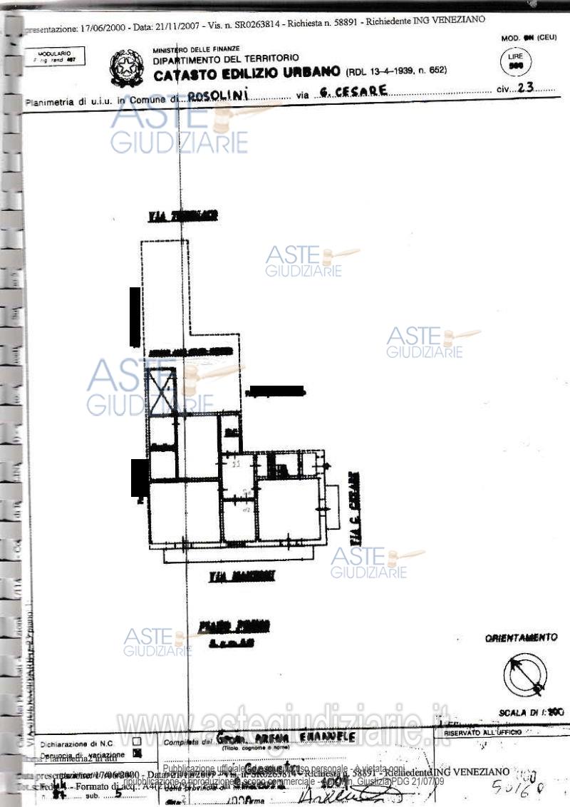 Vendita all'asta Senza incanto, con gara telematica sincrona mista - LOTTO UNICO: Lotto 1 (lotto A in ctu) Descrizione del bene: quota di 1/1 della proprietà di immobile sito in Rosolini (Sr), via Manzoni n 142, angolo via Giulio Cesare con prospetto posteriore in via Turnaco, a due elevazioni fuori terra con piano sottostrada, distinto al Catasto Urbano al fl.44 p.lla 87: sub 4, cat. A/3, cons.6,5 vani, rend. Cat. € 553,90, p. T-S-1; sub 5 cat. A/3, cons.6,5 vani, rend. Cat. € 553,90, p.1; sub 6, cat C/6, classe 3 cons.20mq., rend. Cat. € 90,90 p. T. Prezzo base € 123.702,75 (offerta minima € 92.777,06). Data vendita 03/03/2026 ore 12:00. Professionista delegato alla vendita Avv. Carmelo Cataudella - Email "avvcataudellacarmelo@libero.it"; Cell. 3474804725; Tel. 0931449210. Rif. Tribunale di Siracusa - Contenzioso civile n. 6397/2016