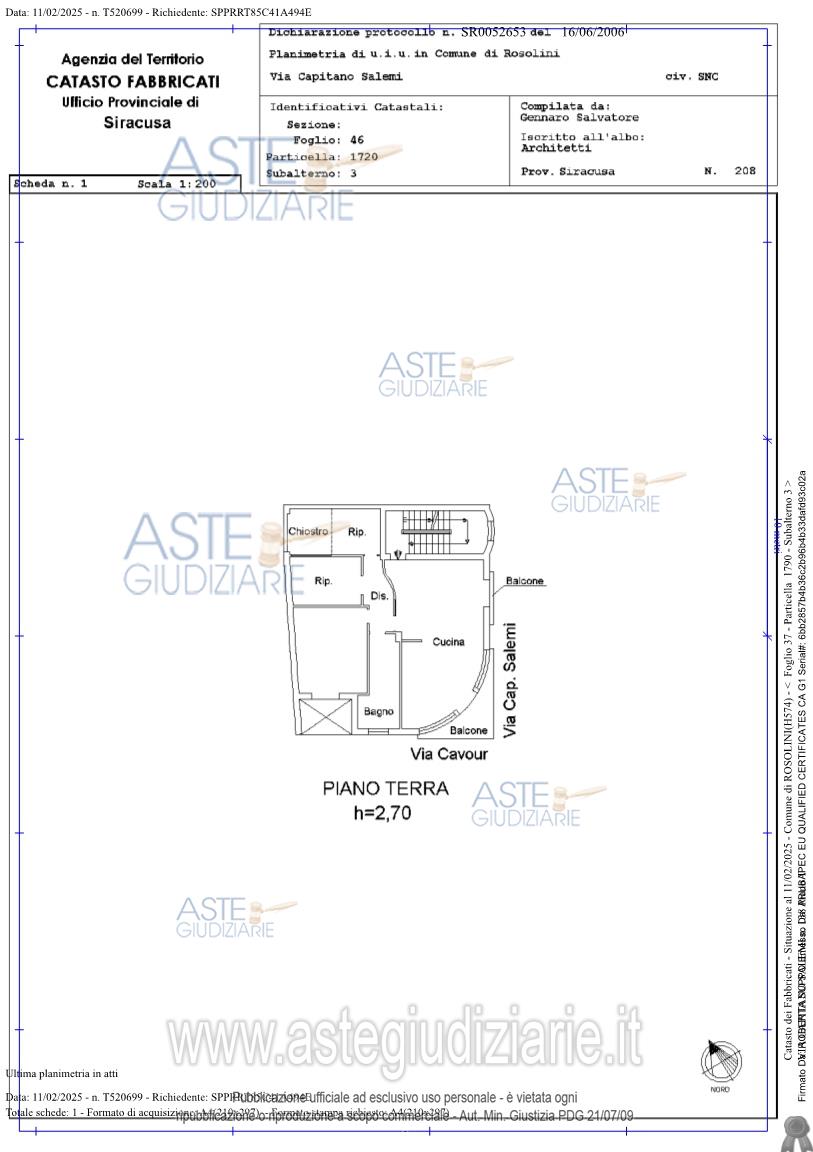 Vendita all'asta Senza incanto, con gara telematica sincrona mista - LOTTO 1: Piena proprietà Appartamento di tipo economico sito in Rosolini (SR), Via Capitano Salemi n.138 piano terra/rialzato, foglio 37, p.lla 1790, sub 3, Cat. A/3, Classe 3, 4 vani, di mq 94 in totale, R.C. € 324,86 (ex foglio 46, p.lla 1720, sub 3), e piena proprietà di unità in corso di costruzione, adibito a garage, sita in Rosolini (SR), con due accessi da Via Cavour snc e da Via Capitano Salemi n.138, foglio 37, p.lla 1790, sub 2, piano S1, Cat. F/3, (ex foglio 46, p.lla 1720, sub 2). Prezzo base € 56.000,00 (offerta minima € 42.000,00). Data vendita 05/02/2026 ore 10:00. Professionista delegato alla vendita Avv. Mauro De Luca - Email "maurodeluca64@gmail.com"; Cell. 3396303847; Tel. 093168236. Custode Giudiziario Avv. Mauro De Luca - Email "maurodeluca64@gmail.com"; Cell. 3396303847; Tel. 093168236. Rif. Tribunale di Siracusa - Espropriazione immobiliare (cartabia) n. 223/2024