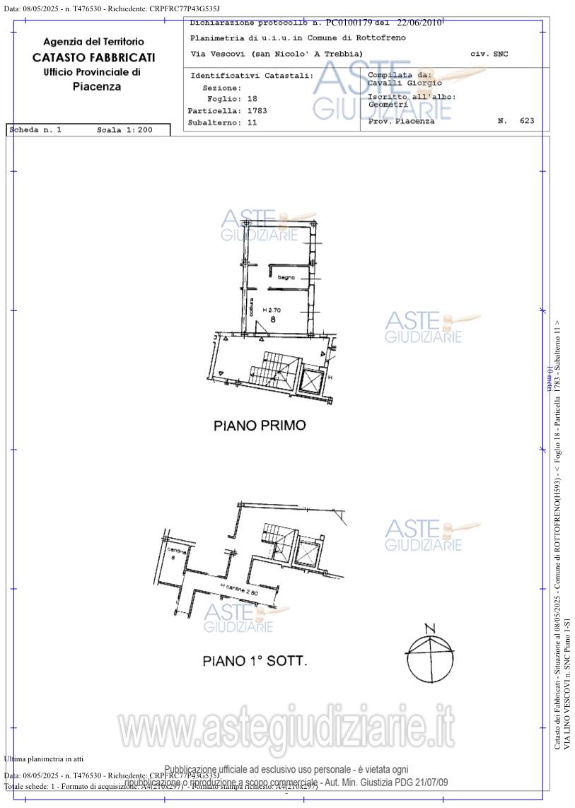 Vendita all'asta Senza incanto, con gara telematica asincrona - LOTTO 1: Piena proprietà di appartamento in condominio posto al piano primo con cantina al piano primo sottostrada. Prezzo base € 72.000,00 (offerta minima € 54.000,00). Data inizio operazioni di vendita: 04/02/2026 ore 15:00. Giudice Stefano Aldo Tiberti. Professionista delegato alla vendita Not. Paola Ugolotti - Email "pugolotti@notariato.it". Custode Giudiziario Istituto Vendite Giudiziarie Di Parma E Piacenza - Email "immobiliparma@ivgparma.it"; Tel. 0521273762. Rif. Tribunale di Piacenza - Espropriazione immobiliare (cartabia) n. 122/2024