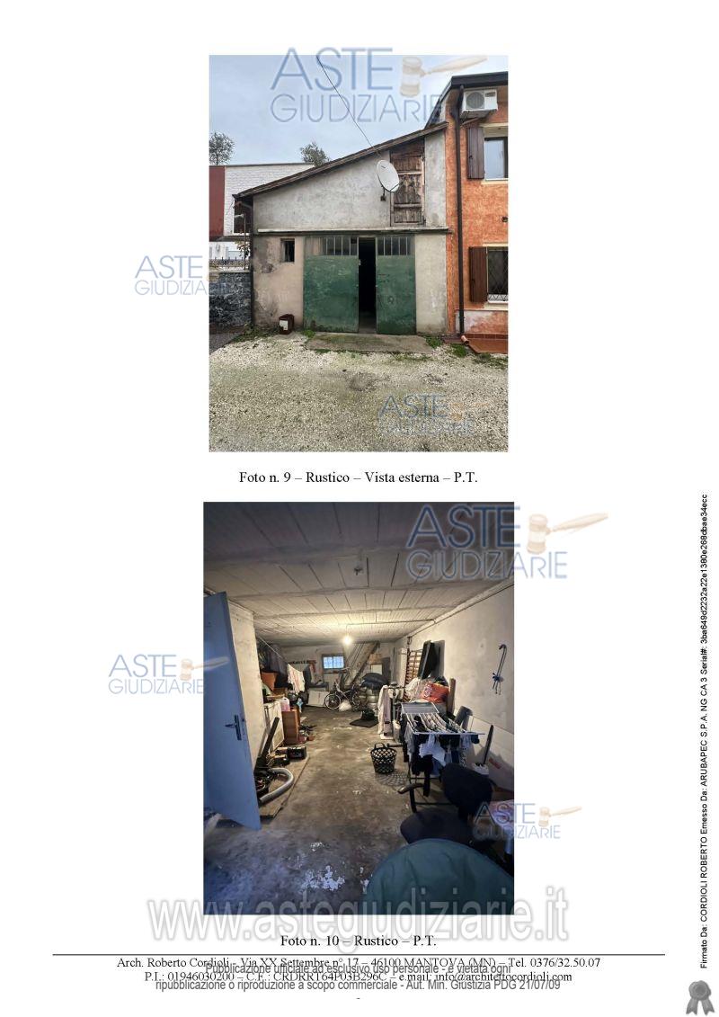 Vendita all'asta Senza incanto, con gara telematica sincrona mista - LOTTO UNICO: Abitazione e rustico ubicati a Roverbella (MN), in piazza G. Garibaldi, 10, i beni oggetto di stima sono porzione di un fabbricato di tipo popolare e un rustico inseriti nel territorio urbano del comune di Roverbella (MN), con accesso da cortile comune da piazza G. Garibaldi. L’abitazione è suddivisa su tre livelli (T-1-2), con una superficie lorda complessiva di circa 191,61 mq. Il rustico è suddiviso su due livelli (T-1), con una superficie lorda complessiva di circa 116,66 mq. Prezzo base € 43.784,77 (offerta minima € 32.838,57). Data vendita 18/12/2025 ore 16:00. Professionista delegato alla vendita Avv. Giovanni Gasparini - Email "avvocato.giovanni.gasparini@gmail.com"; Tel. 0376229772. Custode Giudiziario Sovemo - Email "immobiliaremantova@sovemo.com"; Tel. 0376220694. Rif. Tribunale di Mantova - Espropriazione immobiliare (cartabia) n. 88/2024