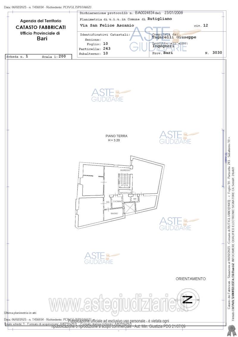 Vendita all'asta Senza incanto, con gara telematica asincrona - LOTTO UNICO: Piena proprietà dell'immobile al secondo piano. Prezzo base € 59.782,50 (offerta minima € 44.837,00). Data inizio operazioni di vendita: 14/07/2026 ore 17:00. Giudice Dott. Marisa Attollino. Professionista delegato alla vendita Avv. Vincenzo Colaninno - Email "vincenzocolaninno@libero.it". Custode Giudiziario Avv. Vincenzo Colaninno - Email "vincenzocolaninno@libero.it". Rif. Tribunale di Bari - Esecuzione immobiliare post legge 80 n. 368/2022