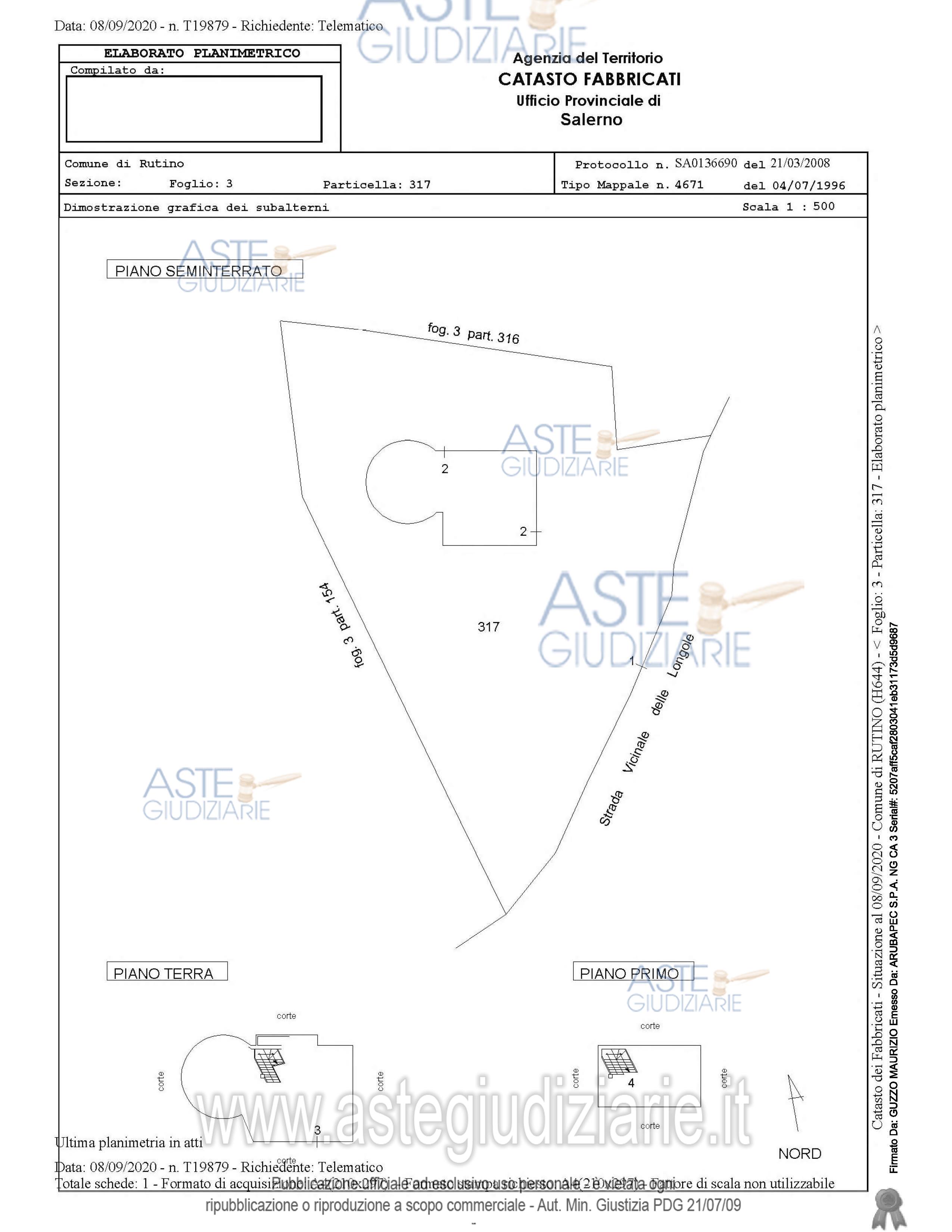 Vendita in attesa dell'emissione del nuovo bando d'asta. LOTTO UNICO: - appartamento ubicato al piano terra di maggior fabbricato, composto da tre vani ed accessori, censito nel Catasto Fabbricatial foglio 3 particella 317 sub 3, categoria A/3, classe 3 ^- altro appartamento ubicato al piano primo del medesimo fabbricato in Rutino, composto da due vani ed accessori, censito nel Catasto Fabbricati al foglio 3 particella 317 sub 4, categoria A/3, classe 3 ^,. Ultimo prezzo base € 65.790,00 (offerta minima € 49.342,50). Professionista delegato alla vendita Dott. Francesco Manganiello. Custode Giudiziario Dott. Francesco Manganiello - Email "francesco.manganiello@hotmail.it"; Cell. 3939444110; Tel. 097472972. Rif. Tribunale di Vallo della Lucania - Esecuzione immobiliare post legge 80 n. 63/2019