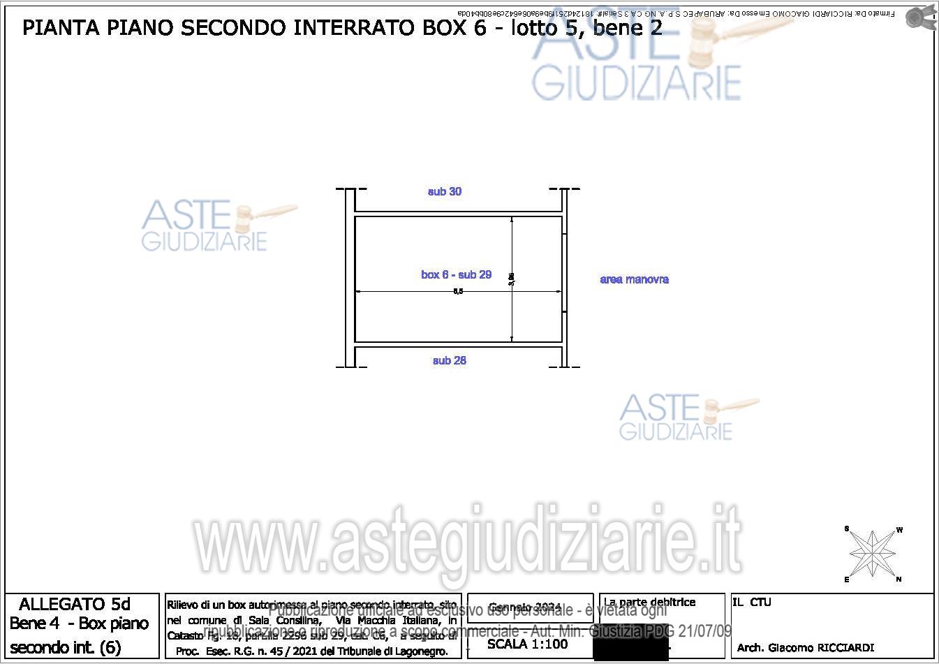 Vendita all'asta Senza incanto, con gara telematica asincrona - LOTTO 5: Il lotto comprende la casa di abitazione piano 4 int.17 vani 6 mq.122,,42 ed il box piano S2mq 28,00. Prezzo base € 73.968,75 (offerta minima € 55.474,00). Data inizio operazioni di vendita: 18/12/2025 ore 17:00. Professionista delegato alla vendita Avv. Catia Nola - Email "katia.nola@tiscali.it". Custode Giudiziario Avv. Catia Nola - Email "katia.nola@tiscali.it"; Cell. 3384535293. Rif. Tribunale di Lagonegro - Esecuzione immobiliare post legge 80 n. 45/2021