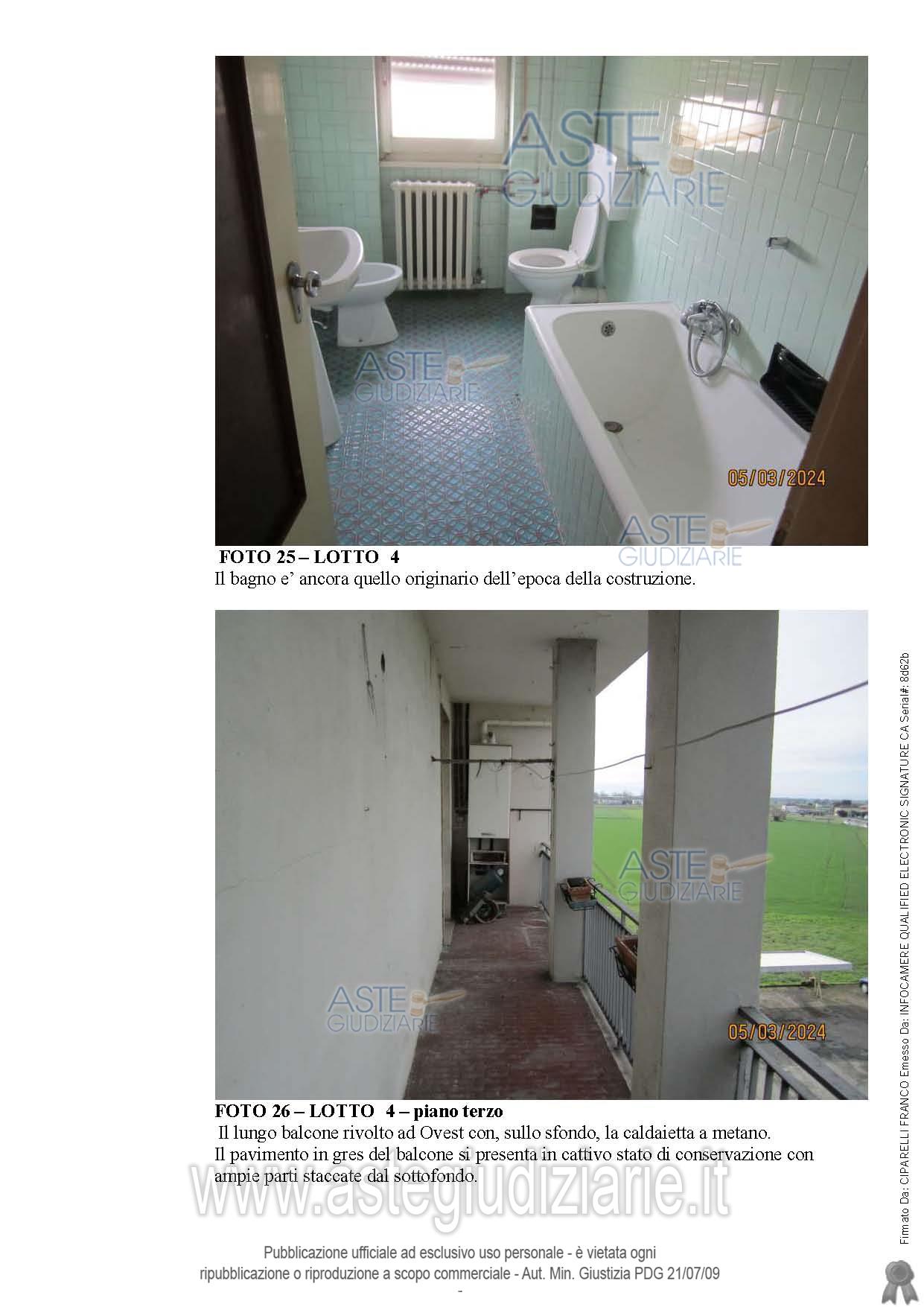 Vendita all'asta Senza incanto - LOTTO 4: LOTTO IV - Piena proprietà di alloggio composto da soggiorno, cucina abitabile, tre camere e un bagno, presenta affacci ad Ovest ed Est col solo bagno che prospetta il fronte Nord. Un terrazzo coperto di circa 14 mq. a cui si accede dal soggiorno e da una camera da letto, è orientato sul fronte Ovest. Prezzo base € 20.703,75 (offerta minima € 15.527,81). Data vendita 13/01/2026 ore 15:30. Giudice Dott. Michele Delli Paoli. Professionista delegato alla vendita Cristina Carola Giordano - Email "cristina.carola.giordano@mail.com"; Cell. 3331577368; Tel. 0131231052. Custode Giudiziario Avv. Cristina Carola Giordano - Email "cristina.carola.giordano@gmail.com". Rif. Tribunale di Alessandria - Espropriazione immobiliare (cartabia) n. 298/2023