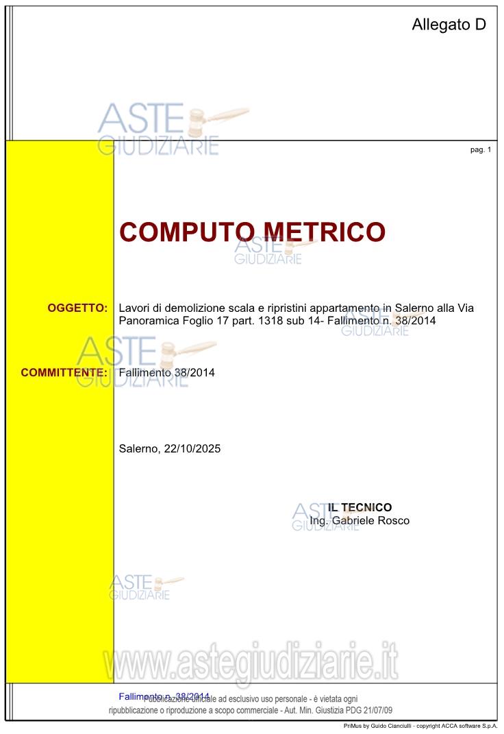 Vendita all'asta Senza incanto, con gara telematica asincrona - LOTTO UNICO: Appartamento di tipo civile al piano terzo, composto da un salone posto all’ingresso, una stanza con terrazzo, tre camere da letto di cui due con balconi da affaccio, doppi servizi e disimpegno, oltre posto auto scoperto. Prezzo base € 268.000,00 (offerta minima € 201.000,00). Data inizio operazioni di vendita: 21/04/2026 ore 09:30. Curatore Avv. Costabile Guercio - Email "costabile.guercio@fastwebnet.it"; Cell. 3392845438. Rif. Tribunale di Salerno - Fallimentare (nuovo rito) n. 38/2014