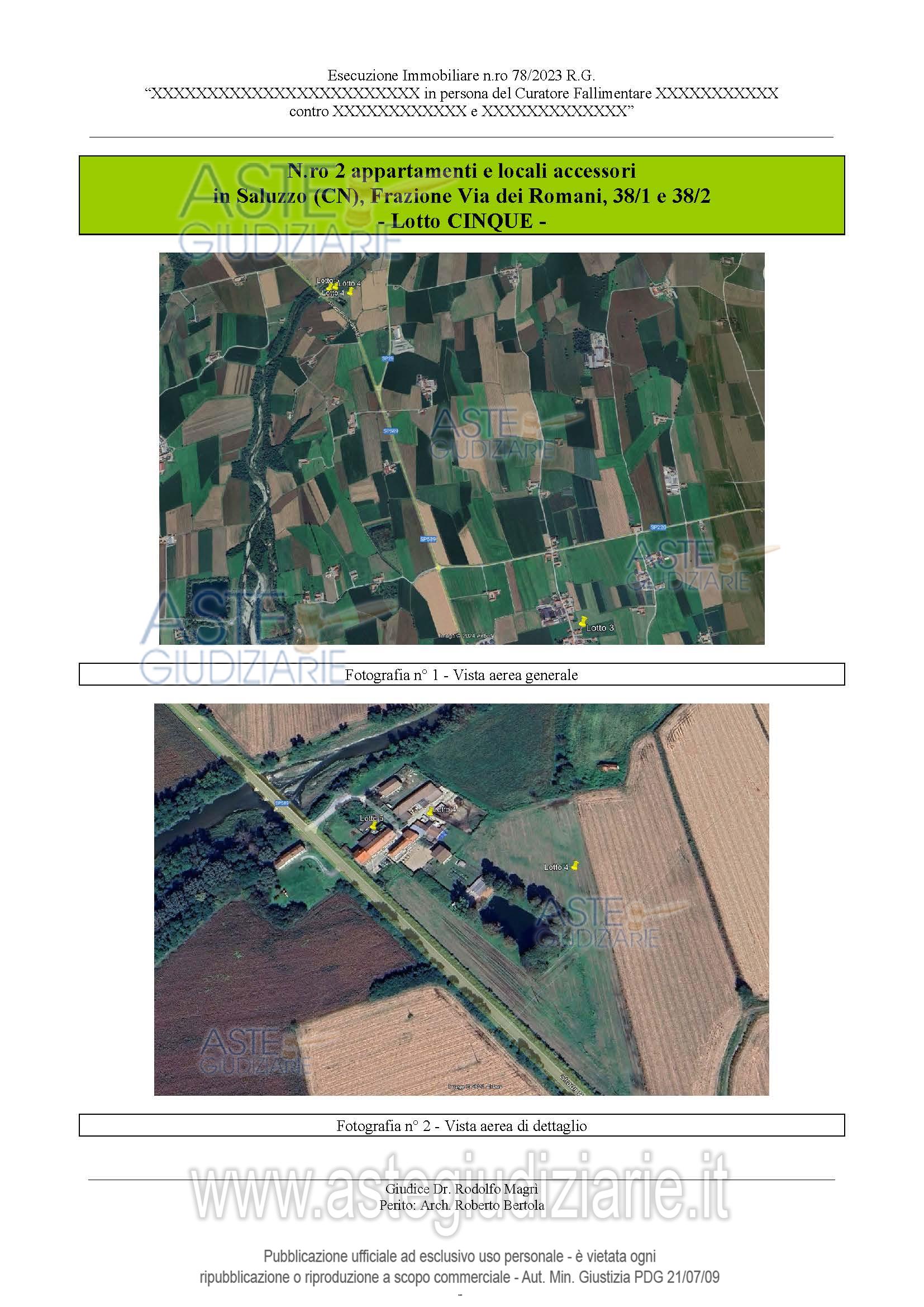 Vendita all'asta Senza incanto, con gara telematica asincrona - LOTTO 5: Appartamento, garage e magazzino a Saluzzo (CN), Via Frazione dei Romani n. 38/1,. Prezzo base € 46.267,00 (offerta minima € 34.700,00). Data inizio operazioni di vendita: 16/04/2026 ore 17:30. Giudice Roberta Bonaudi. Professionista delegato alla vendita Avv. Roberto Tesio - Email "mondino.tesio@multiwire.net"; Tel. 017441342. Custode Giudiziario Ifir Piemonte Ivg Srl - Email "richiestevisite.cuneo@ivgpiemonte.it"; Tel. 01711873923. Rif. Tribunale di Cuneo - Esecuzione immobiliare post legge 80 n. 78/2023