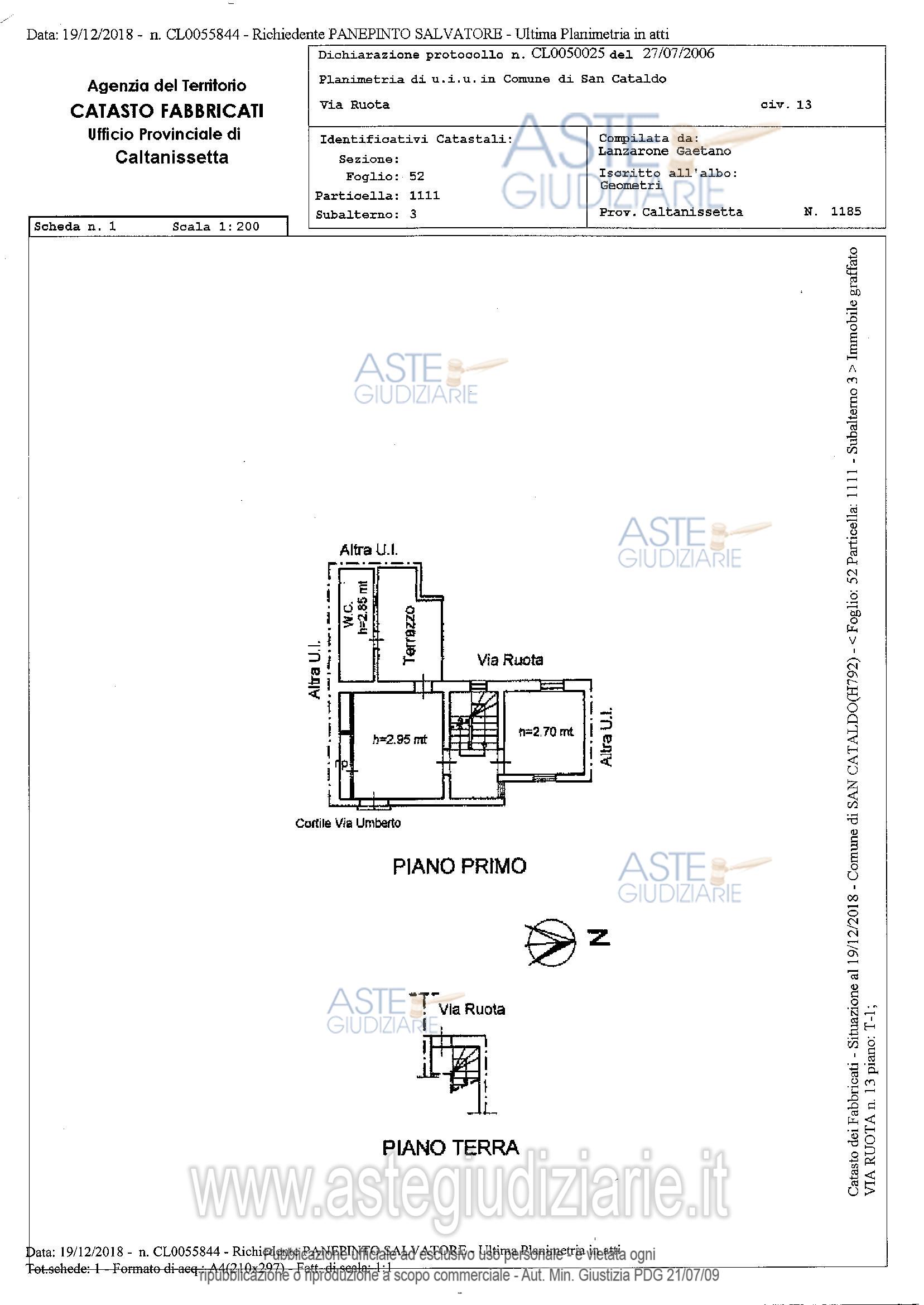 Vendita all'asta Senza incanto, con gara telematica sincrona mista - LOTTO UNICO: Piena proprietà dell’immobile adibito a civile abitazione composto dal piano terra e primo piano. Prezzo base € 6.750,00 (offerta minima € 5.062,50). Data vendita 26/05/2026 ore 17:30. Giudice Dott. Ester Rita Difrancesco. Professionista delegato alla vendita Avv. Rossella Ilardo. Custode Giudiziario Avv. Rossella Ilardo - Email "rossellailardo@alice.it"; Cell. 3393186850; Tel. 0934680645. Rif. Tribunale di Caltanissetta - Esecuzione immobiliare post legge 80 n. 60/2018