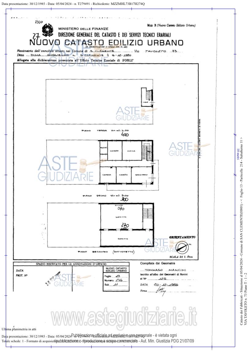 Vendita all'asta Senza incanto, con gara telematica asincrona - LOTTO 1: Piena proprietà di porzione del fabbricato urbano sito nel Comune di San Clemente (RN) Via Tavoleto (catastalmente civico 73) e precisamente un appartamento sito al piano terra, primo, oltre a sottotetto al grezzo, sviluppante una superficie lorda complessiva di mq. 151, oltre a balconi per circa mq. 28 e sottotetto al grezzo di circa mq. 150. Prezzo base € 132.000,00 (offerta minima € 99.000,00). Data inizio operazioni di vendita: 26/05/2026 ore 11:00. Giudice Letizia Bocchini. Professionista delegato alla vendita Not. Andrea Aquilina - Email "esecuzioni@notaioaquilina.it"; Tel. 054154139. Custode Giudiziario Not. Andrea Aquilina - Email "esecuzioni@notaioaquilina.it"; Tel. 054154139. Rif. Tribunale di Rimini - Espropriazione immobiliare (cartabia) n. 68/2023