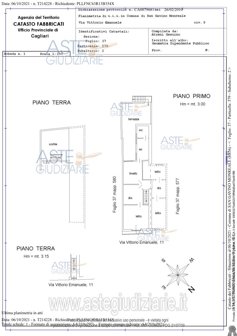 Custode Giudiziario Istituto Vendite Giudiziarie Cagliari - Email "ivg.visiteimmobili@tiscali.it"; Tel. 070/2299036.