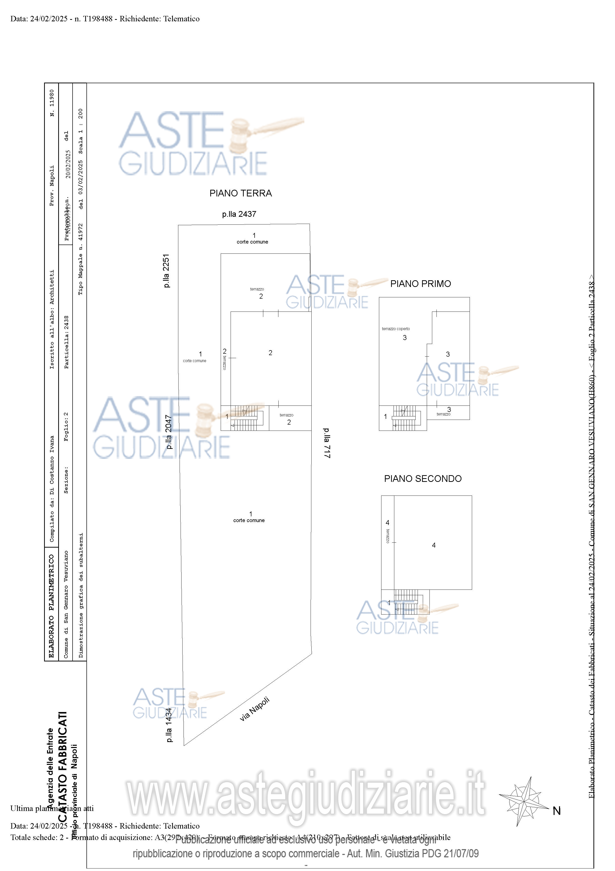 Vendita all'asta Senza incanto, con gara telematica asincrona - LOTTO UNICO: Piena ed esclusiva proprietà dei seguenti beni: BENE N°1 - LOTTO DI TERRENO ubicato in San Gennaro Vesuviano (NA) alla via Napoli n.131, distinto in Catasto terreni al Foglio 2 p.lla 2437 (ex Foglio 2 p.lla 623), NOCETO Classe U, are 04,02, reddito dom. €. 15,57 e reddito agr. €. 3,84;BENE N°2 - FABBRICATO PER CIVILE ABITAZIONE, IN CORSO DI COSTRUZIONE ubicato in San Gennaro Vesuviano (NA) alla via Napoli n. 131. Prezzo base € 150.000,00 (offerta minima € 112.500,00). Data inizio operazioni di vendita: 04/11/2025 ore 17:00. Professionista delegato alla vendita Dott. Salvatore Russo - Email "studiorusso4@gmail.com"; Tel. 0818031586. Custode Giudiziario Dott. Salvatore Russo - Email "studiorusso4@gmail.com"; Tel. 0818031586. Rif. Tribunale di Nola - Espropriazione immobiliare (cartabia) n. 61/2024