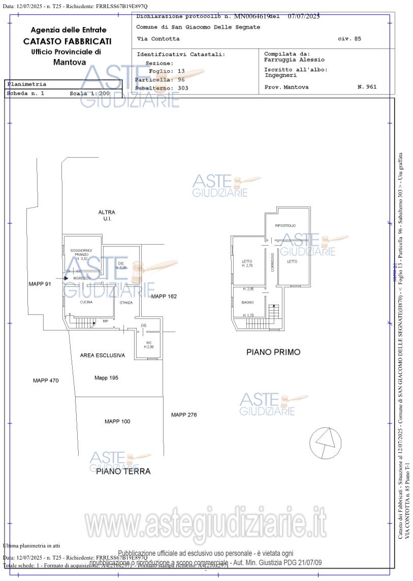 Vendita all'asta Senza incanto, con gara telematica sincrona mista - LOTTO 1: Piena proprietà di un’abitazione unifamiliare, su due livelli, con giardino di pertinenza esclusiva in nucleo abitativo costituito da case a schiera ante '67 ubicato in Via Contotta n. 85 in località Malcantone nel Comune di San Giacomo delle Segnate (MN). L'unità immobiliare è costituita, al piano terra, da ingresso, soggiorno, cucina separata abitabile, una grande stanza disimpegno, una stanza, uno spazio disimpegno nei pressi del bagno, un sottoscala, un bagno e, al piano primo, raggiungibile da scala interna, da un corridoio, un bagno, due camere da letto e una stanza ripostiglio. Prezzo base € 28.687,50 (offerta minima € 21.515,63). Data vendita 28/05/2026 ore 11:00. Giudice Dott. Mauro Pietro Bernardi. Professionista delegato alla vendita Dott. Andrea Girelli - Email "andrea.girelli@studiogirelli.it;valentina.modica@studiogirelli.it"; Tel. 0376 246611. Custode Giudiziario So.Ve.Mo. (Societa' Vendite Mobiliari) - S.R.L. - Email "immobiliaremantova@sovemo.com;immobiliare@sovemo.com". Rif. Tribunale di Mantova - Esecuzione immobiliare n. 21/2025
